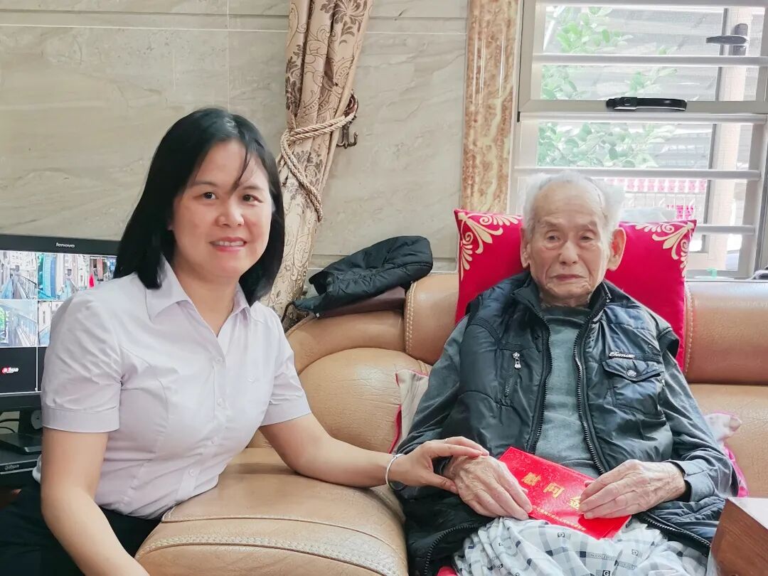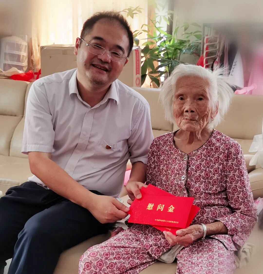 走訪慰問過(guò)程中,鄧明輝、賴曉彤與老同志促膝交談,仔細詢問他們的身體、生活狀況,認真聆聽他們講述抗戰故事(shì)和革命經(jīng)曆,一同追憶曾經(jīng)的奮鬥曆程和難忘的歲月,真切感受到老同志沉甸甸的愛黨愛國(guó)情懷。兩(liǎng)人叮囑老人們要保持身體健康、心情愉悅。