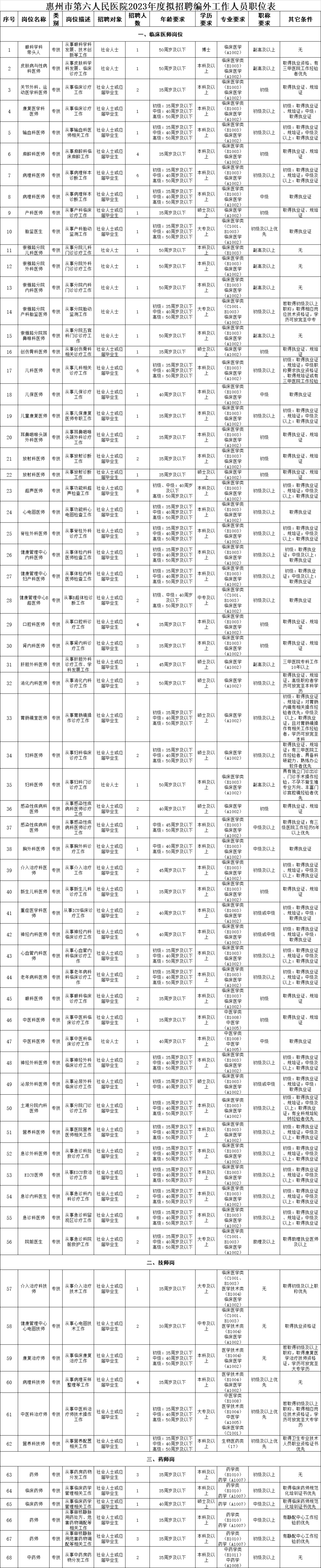 1.惠州市第六人民醫院2023年度專業技術人員招聘職數表