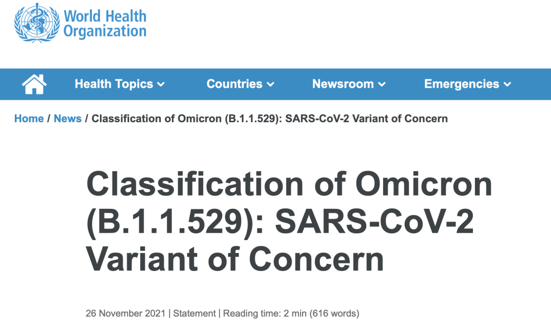 近日,在非洲多個國(guó)家發(fā)現的新冠病毒新型變異株引起(qǐ)各國(guó)高度警惕。11月26日,世界衛生組織發(fā)布聲明,將(jiāng)這(zhè)種(zhǒng)新型新冠病毒變異株B.1.1.529列爲“需要關注的變異株”,并命名爲奧密克戎(Omicron)。世衛組織在聲明中指出,奧密克戎(Omicron)變異株包含大量突變,其中一些令人擔憂。專家在對(duì)新冠病毒變異株B.1.1.529進(jìn)行測序後(hòu)發(fā)現,其具有比此前所有新冠變異毒株更多的突變,已發(fā)現的變異突變有32處。而在去年10月報告發(fā)現的德爾塔變異株僅有15處突變。
