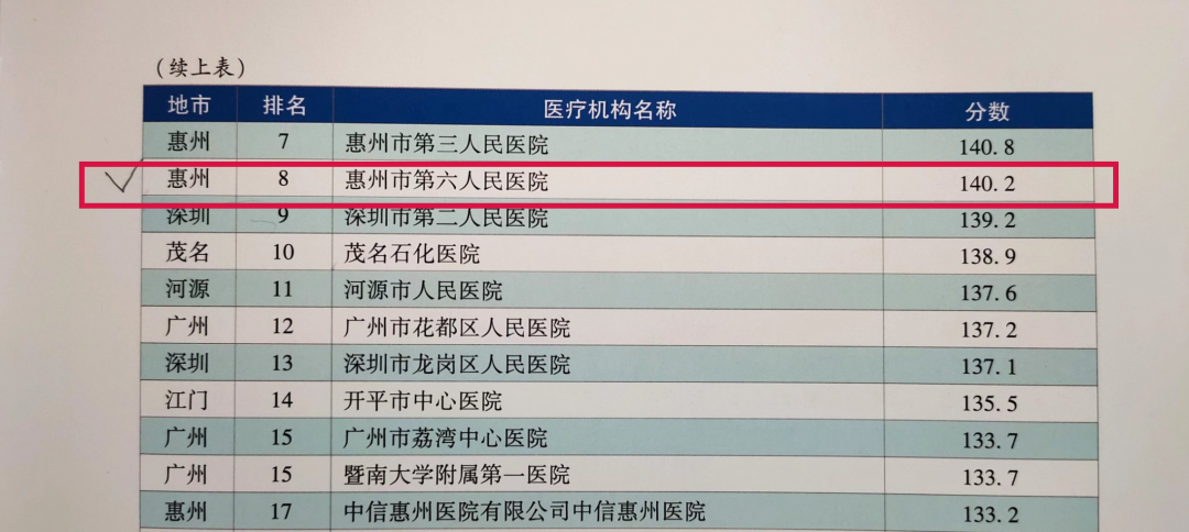 2022年6月9日,廣東省醫保局發(fā)布《廣東省定點三級綜合醫療機構醫保醫藥服務評價報告(2021年)》,惠州市第六人民醫院在全省137家三級定點綜合醫療機構中脫穎而出,總成(chéng)績榮獲全省第35名!另外,在醫保運營、持續發(fā)展兩(liǎng)個評價子項目表現特别優異,分别跻身全省第8名和第5名,同時(shí)獲得三項殊榮!