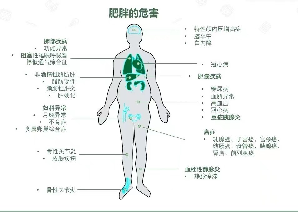 《中國(guó)居民營養與慢性病狀況報告(2020年)》顯示,中國(guó)成(chéng)年居民超重肥胖率超過(guò)50%,6-17歲的兒童青少年以及6歲以下的學(xué)齡前兒童中,超重/肥胖率分别達20%和10%。肥胖已被(bèi)WHO認定爲疾病。肥胖也會(huì)引發(fā)一系列健康問題,例如增加高血壓、糖尿病、血脂異常、冠心病、心肌梗死、卒中及部分腫瘤等多種(zhǒng)慢性病的風險。