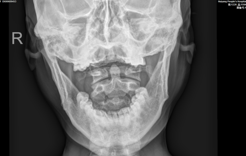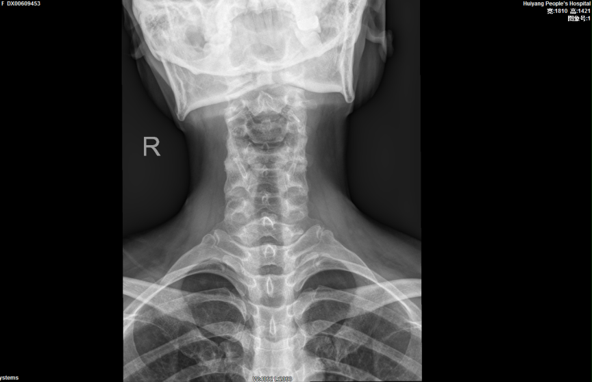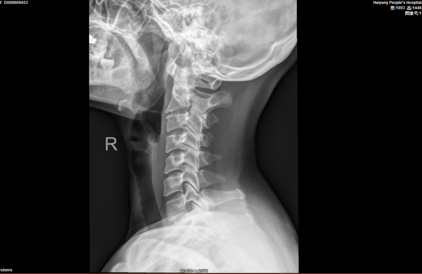 完善相關檢查後(hòu), 報告提示患者的頸椎生理曲度變直,序列如常。C2-7椎體邊緣可見不同程度骨質變尖、突起(qǐ)。C2/3椎間隙明顯變窄,呈前窄後(hòu)寬改變;餘椎間隙未見明顯變窄。項韌帶未見鈣化。寰樞關節開(kāi)口位見雙側不對(duì)稱,左側較右側爲寬(左側6mm,右側3mm),關節面(miàn)光整,寰椎、樞椎骨質未見明顯異常。周圍軟組織未見異常密度。