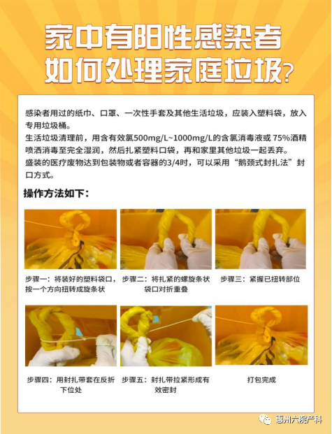 如果自己或者家庭成(chéng)員“陽”了,處理居家産生的垃圾時(shí),可以用酒精或消毒液噴灑消毒,而除了消殺,還(hái)有一種(zhǒng)方法,可以有效保護我們和家人以及清運垃圾的人員少受傷害——那就(jiù)是“鵝頸式封紮法”。