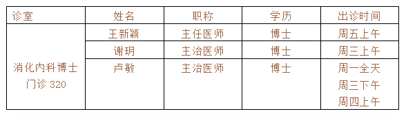 根據醫聯體工作安排,南方醫科大學(xué)珠江醫院消化内科王新穎主任、謝玥博士、盧敏博士3位科室骨幹組成(chéng)的博士團隊將(jiāng)長(cháng)期在我院消化内科博士門診輪值出診,緻力提升我院專科技術實力和醫療服務質量,市民朋友可留意各位專家的出診時(shí)間預約挂号。