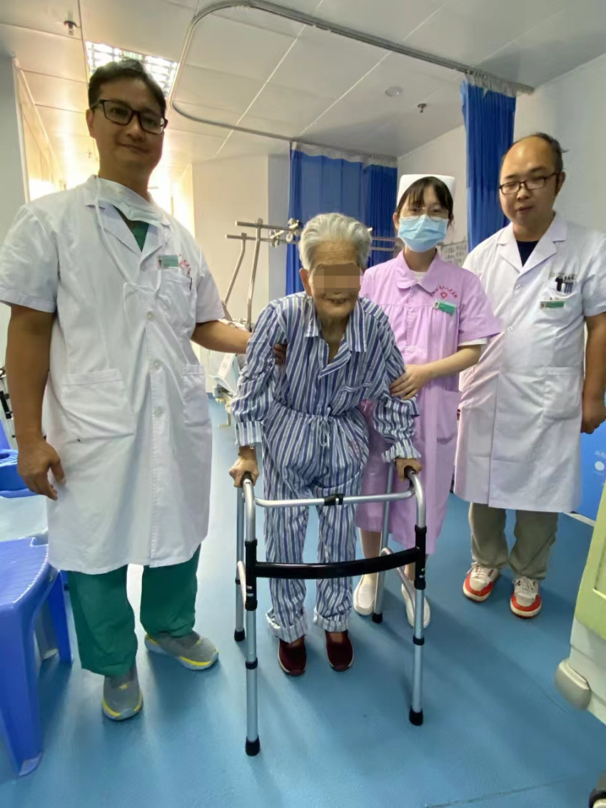 近日,惠州六院關節外科、運動醫學(xué)科團隊成(chéng)功救治一位近百歲的髋部骨折的高齡患者,幫助患者安穩度過(guò)圍術期并達到早期離床,早期下地(術後(hòu)3天)鍛煉的快速康複目标。