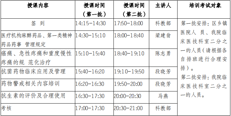 本次培訓分兩(liǎng)批次進(jìn)行,共培訓醫師、藥師和護理人員700餘人,培訓後(hòu)馬上進(jìn)行考核,滿80分爲合格,達到預期的效果。接下來惠州六院醫務部將(jiāng)對(duì)考核合格的醫師授予麻精藥品和抗菌藥物處方權限,以及對(duì)考核合格的藥師授予麻精藥品和抗菌藥物調劑權。