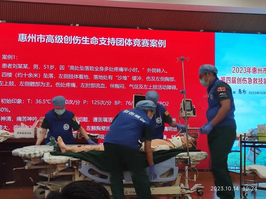 10月14日,由惠州市醫學(xué)會(huì)創傷分會(huì)主辦的第四屆惠州市創傷急救技能(néng)大賽在惠州市第一人民醫院舉辦,全市共有11支醫院隊伍參賽。惠州市第六人民醫院急診醫學(xué)科、創傷骨科聯合選派冼樹強、王清水兩(liǎng)位醫生及賴文珊、謝位環兩(liǎng)位護士組成(chéng)具備反應快速、技術娴熟、配合默契、靈活多變等特色的創傷急救隊伍參加競賽。