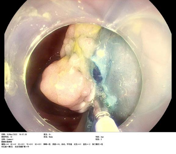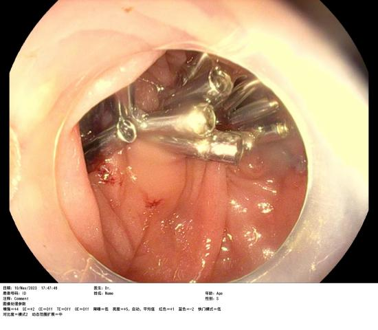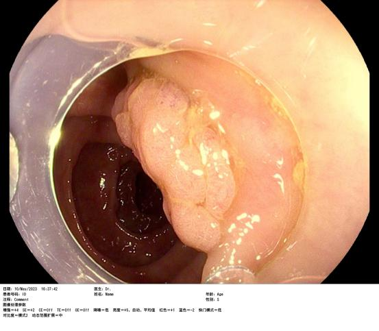 患者賴女士因下腹部疼痛不适半月,在惠州六院行腸鏡檢查時(shí)發(fā)現橫結腸腫物,腫物大小約2.8cmx2.0cm,表面(miàn)充血,于是入院完善采血、心電圖、胸片、全腹部增強CT等一系列檢查,增強CT結果提示腫物未見腸管外浸潤生長(cháng),經(jīng)評估該患者有手術指征,在與患者及家屬充分溝通後(hòu),由消化内科蘇連明副主任醫師爲患者行内鏡下結腸黏膜剝離術(ESD),手術非常順利,術後(hòu)病理及免疫組合明确診斷爲高級别上皮内瘤變——俗稱早期結腸癌。