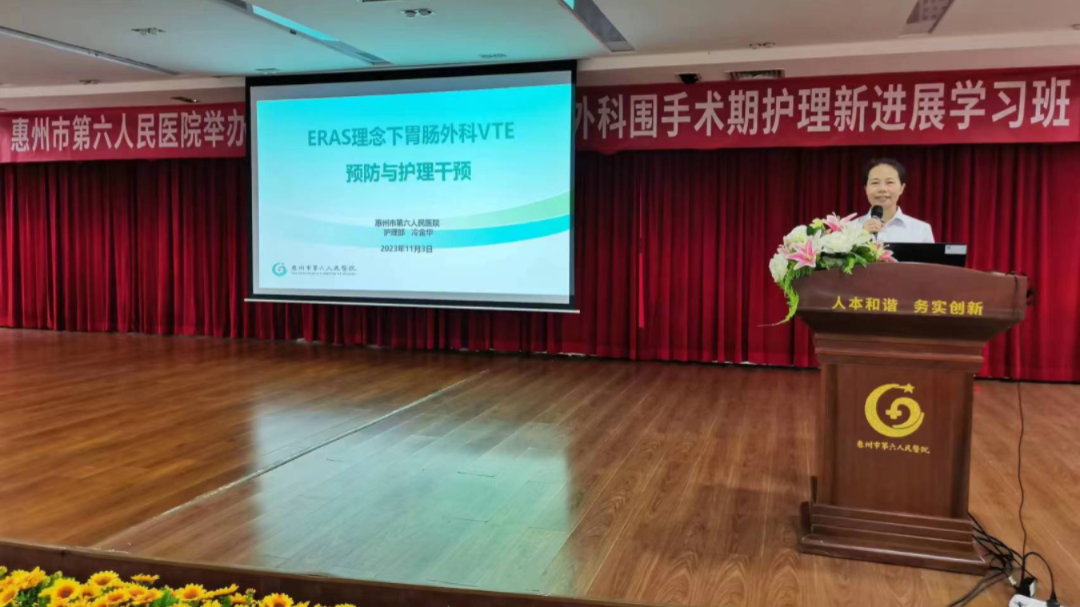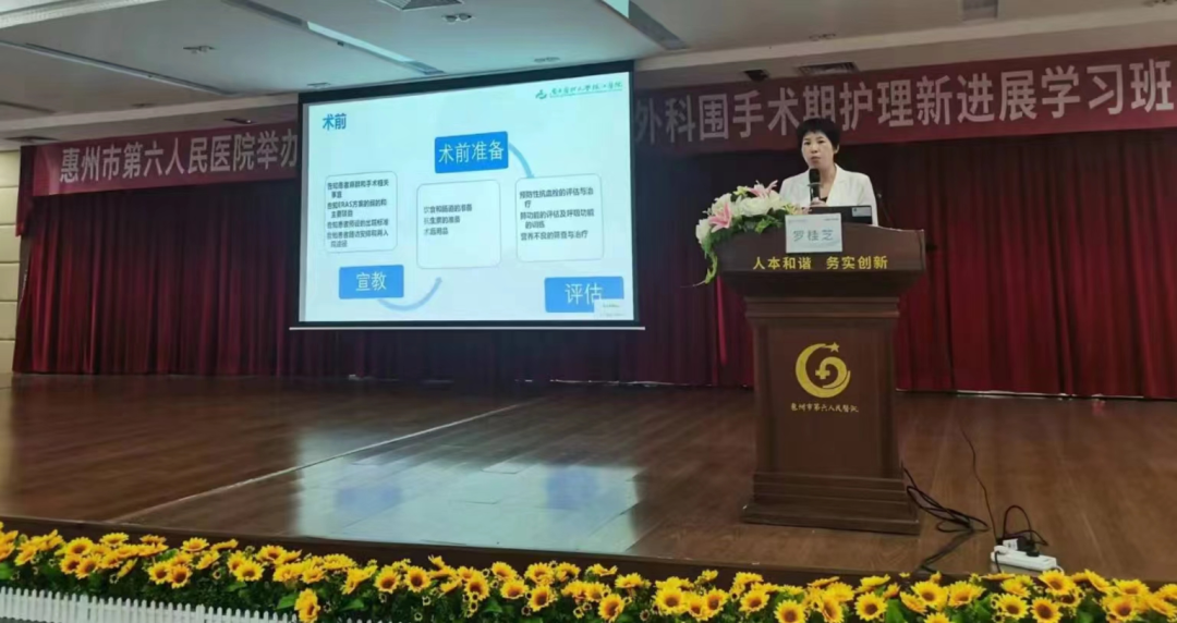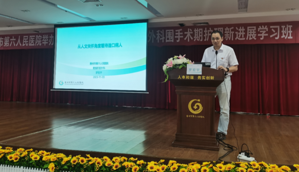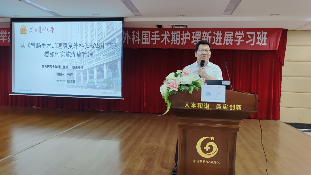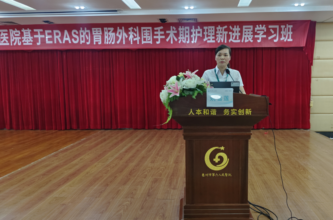 爲加強加速康複外科(Enhanced Recovery After Surgery ,ERAS)護理專科的建設與管理,提高臨床護理質量,優化護理服務理念,惠州市第六人民醫院胃腸肝膽外科在護理部等部門鼎力支持下,于2023年11月3日舉辦市級繼續醫學(xué)教育項目《基層醫院基于ERAS的胃腸外科圍手術期護理新進(jìn)展學(xué)習班》學(xué)習交流活動,活動邀請了南方醫科大學(xué)珠江醫院胃腸外科韓帥博士和羅桂芝護長(cháng)等省内知名專家授課,共300餘名學(xué)員參與。