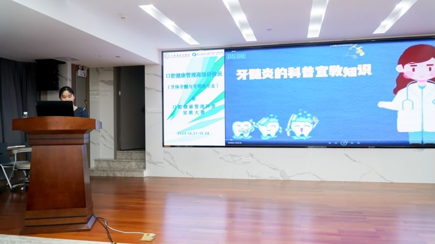 此次比賽分爲初賽和決賽兩(liǎng)個環節,大賽初賽廣泛征集教學(xué)作品,經(jīng)過(guò)組委會(huì)評選,最終選出20組選手進(jìn)行現場決賽展示。決賽作品展示環節,惠州六院口腔科參賽選手陳密如、曾莉、陳麗婷以《牙髓炎的科普宣教知識》《爲什麼(me)要洗牙?》爲題,將(jiāng)相關知識通過(guò)視頻方式展示出來,同時(shí),通過(guò)生動有趣的病例宣教形式,進(jìn)行詳細科普。不僅獲得了在場評委的一緻好(hǎo)評,也赢得了觀衆們的熱烈掌聲。