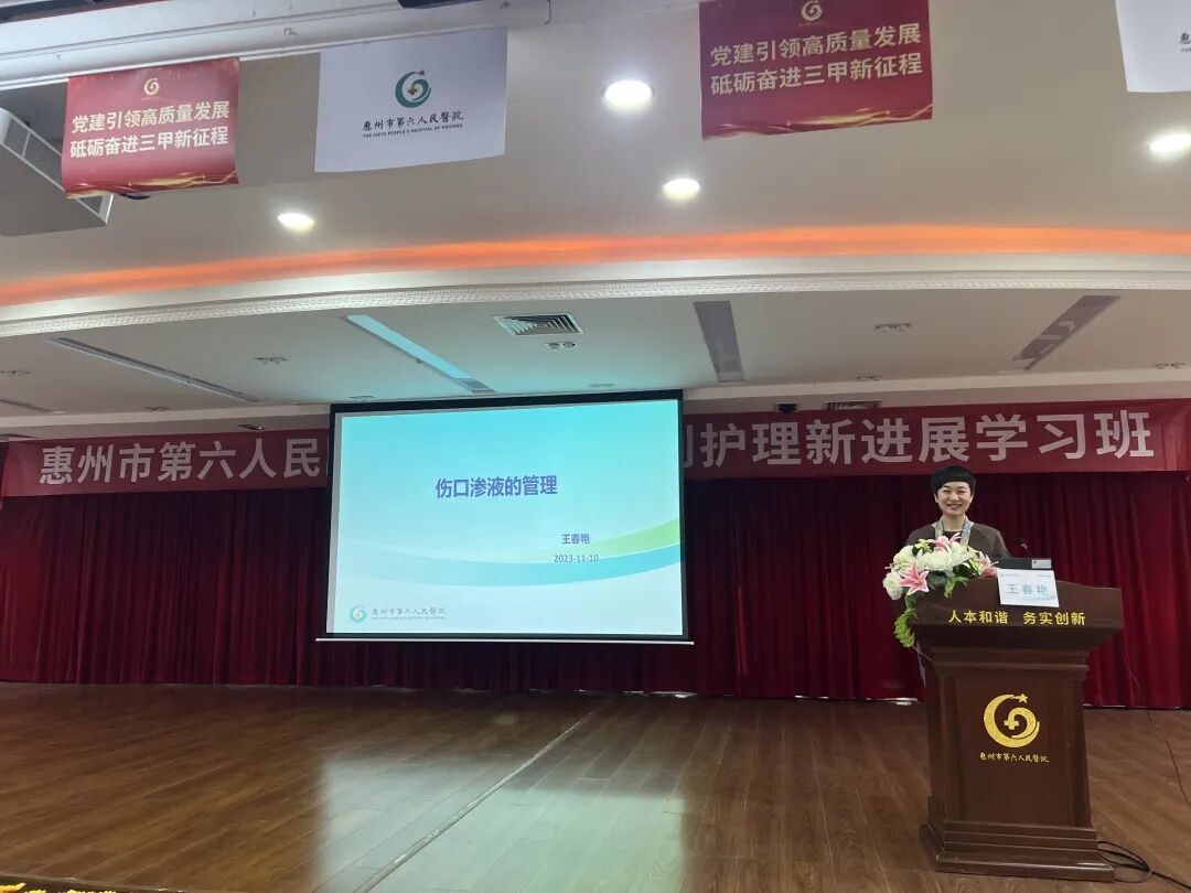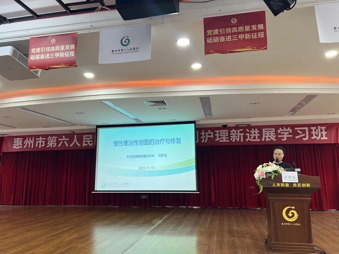 交流活動上,惠州六院手足顯微整形外科/燒傷科何夢龍副主任醫師和傷口造口專科護士王春豔分别針對(duì)“慢性難治性創面(miàn)的治療與修複”、“傷口滲液管理”,爲大家帶來前沿的創面(miàn)治療與傷口護理主題講座,主要介紹了慢性難治性創面(miàn)的類别、主要治療護理手段和解決方案,通過(guò)多個案例分享了慢性難治性創面(miàn)應用皮瓣或肌皮瓣修複的治療促進(jìn)愈合以及如何做好(hǎo)傷口滲液的管理,其豐富的内容和獨到的講解使全體學(xué)員受益匪淺。