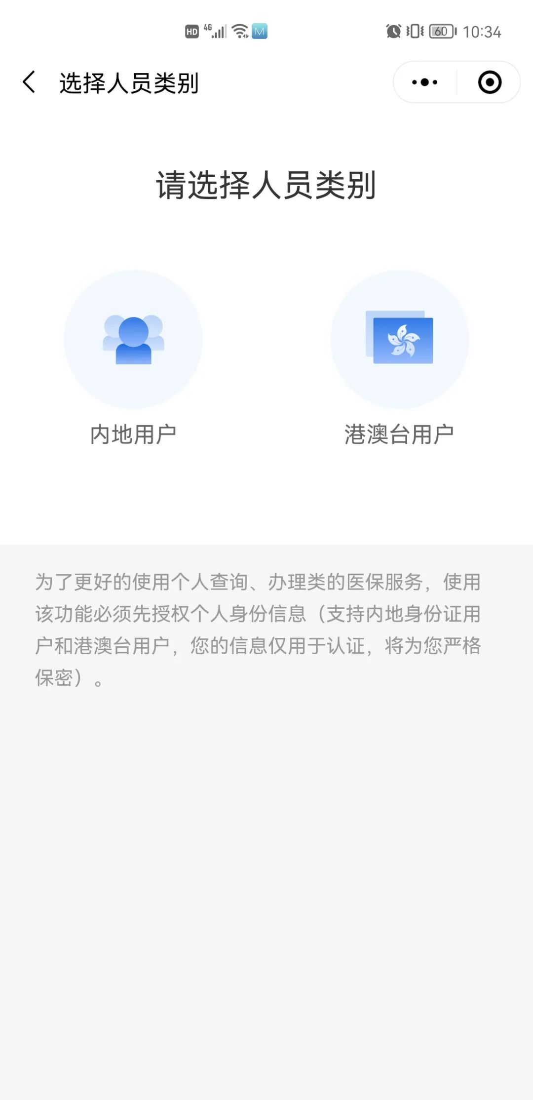 2.用戶選擇人員類别(内地用戶/港澳台用戶),人臉識别認證個人基本信息,保證用戶信息安全。進(jìn)入“粵醫保”界面(miàn),點擊“門診選點登記”;