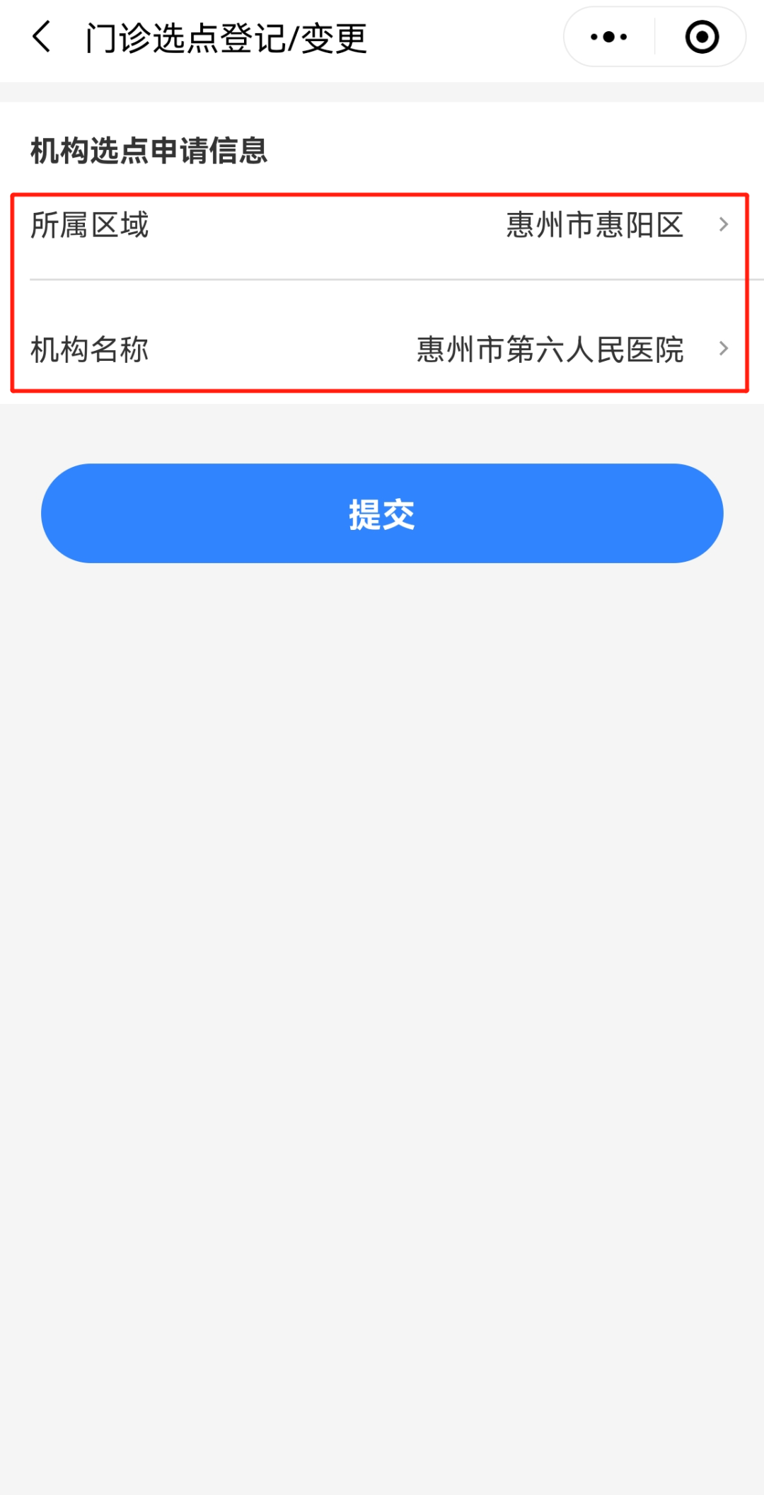 3.點擊并選擇所屬區域及機構名稱,最後(hòu)點擊提交,審核通過(guò)即生效。