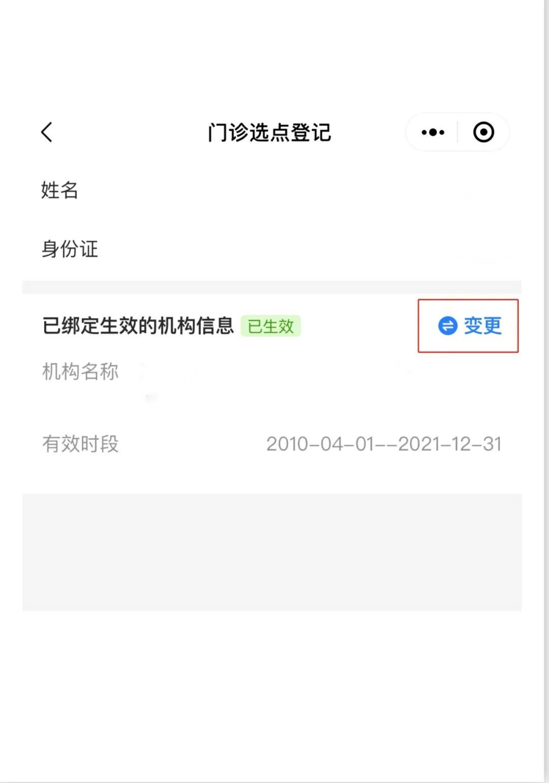 2.點擊“門診選點登記”,點擊“變更”;