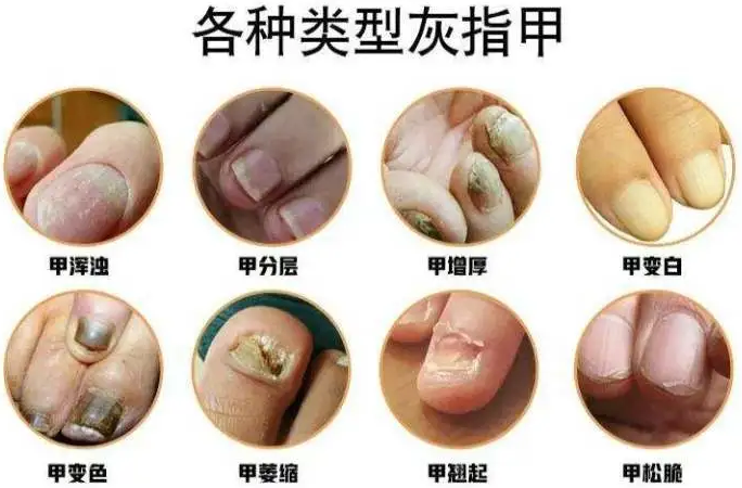 灰指甲在醫學(xué)上被(bèi)稱爲甲真菌病,是由真菌侵入甲闆和甲床引起(qǐ)的一種(zhǒng)慢性感染性甲病。常見症狀有甲闆混濁、變色;甲表面(miàn)凹凸不平,甲闆變形、變脆、碎裂;甲下角質堆積,甲闆肥厚,甲闆與甲床分離甚至甲闆脫落。