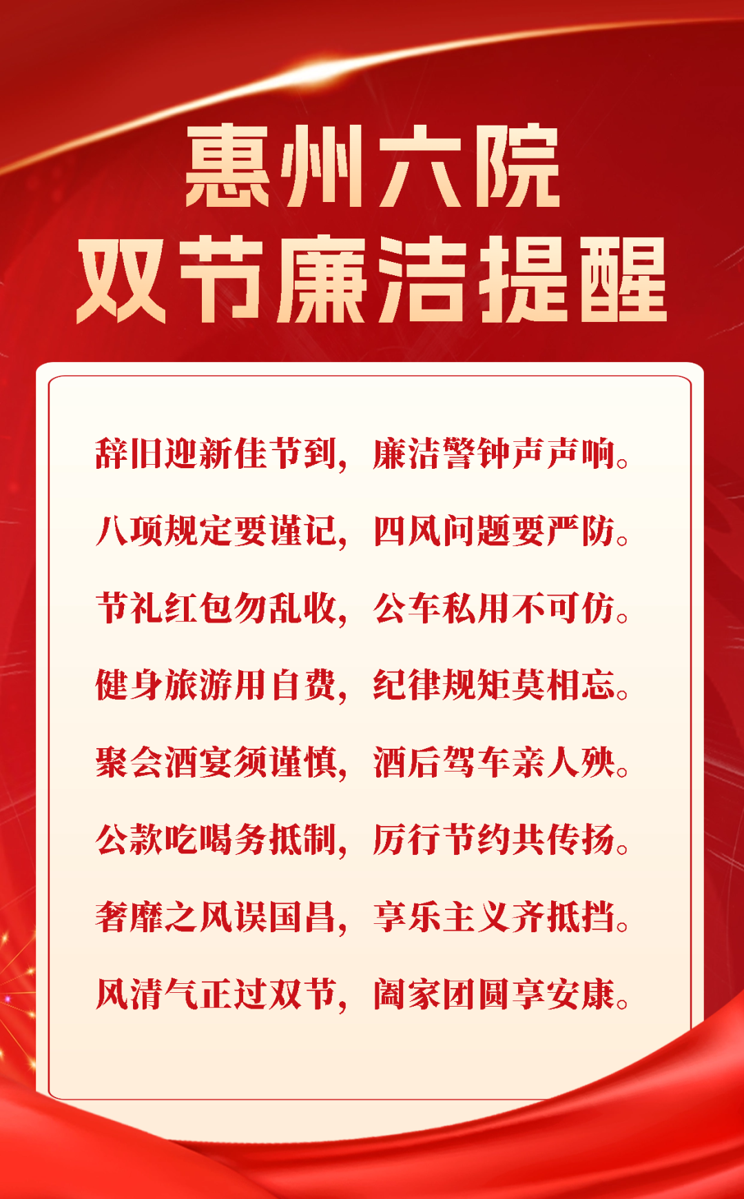 惠州六院雙節廉潔提醒