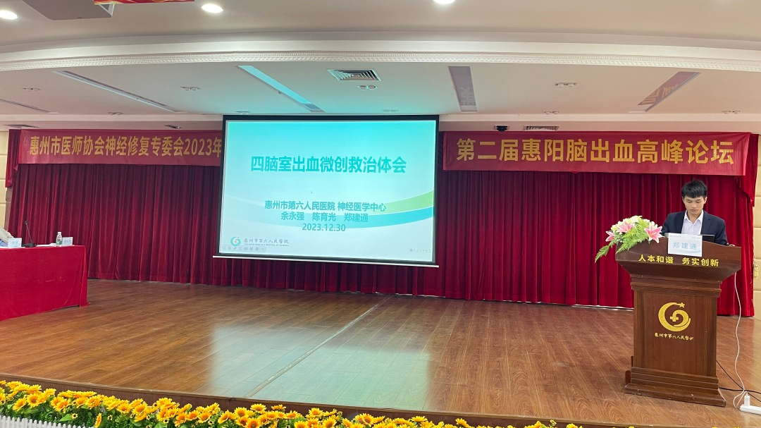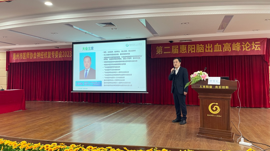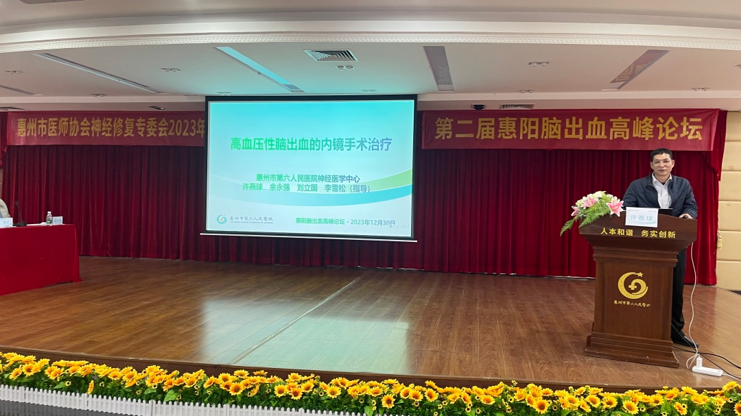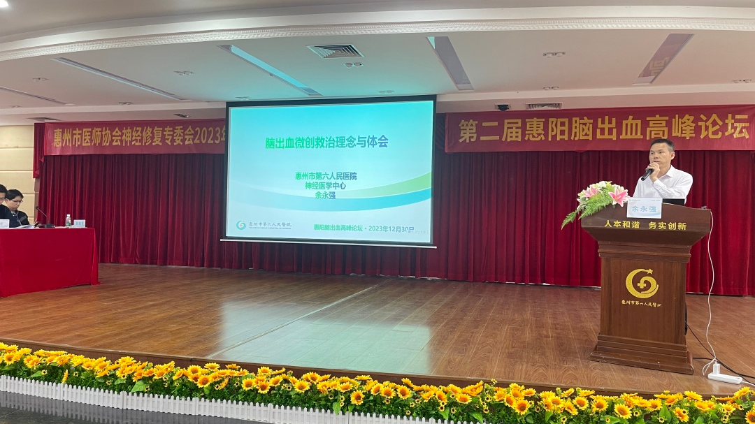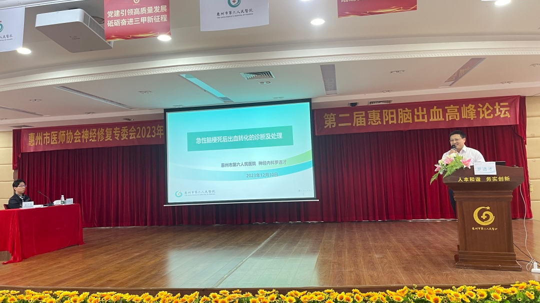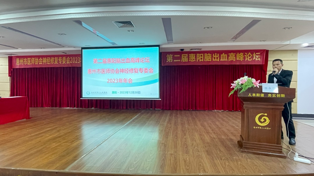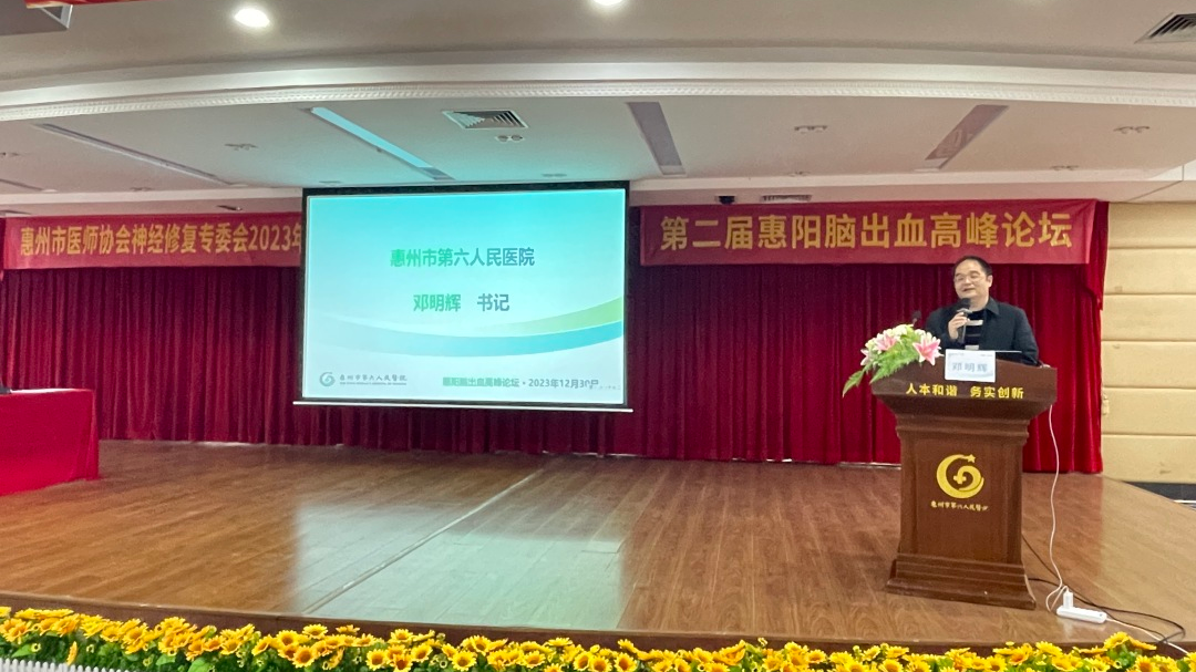 爲提高惠州地區腦出血的救治水平,2023年12月30日,省、市、區腦出血專業大咖雲集惠州市第六人民醫院,參加由惠州市第六人民醫院神經(jīng)醫學(xué)中心主辦的省級繼續醫學(xué)教育項目“第二屆惠陽腦出血高峰論壇”暨惠州市醫師協會(huì)神經(jīng)修複專委會(huì)2023年會(huì),本次會(huì)議由神經(jīng)外科專家、惠州市第三人民醫院李雪松院長(cháng)擔任主席,惠州市第六人民醫院神經(jīng)外科餘永強主任擔任執行主席,惠州市第六人民醫院黨委書記鄧明輝出席本次高峰論壇。該協會(huì)會(huì)員以及各醫院代表約300人參加了會(huì)議。