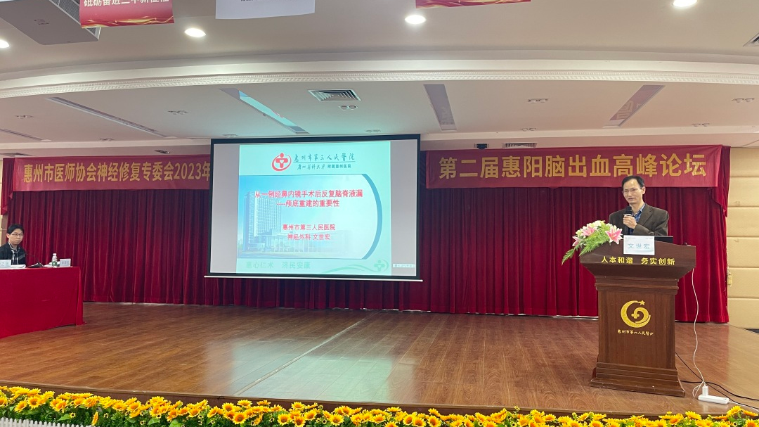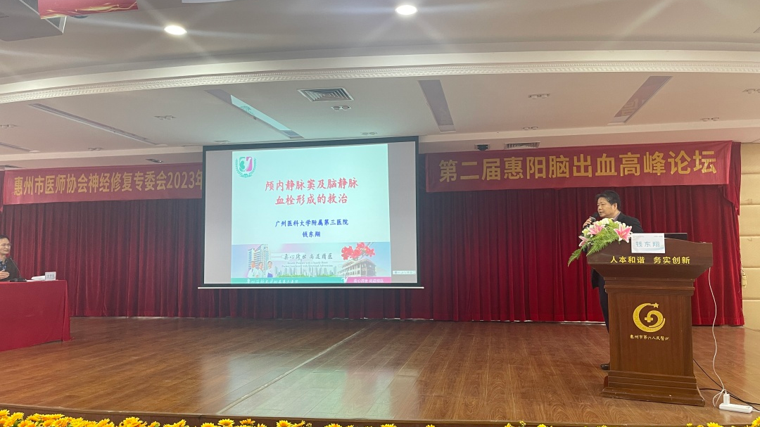 本次學(xué)術會(huì)議分爲兩(liǎng)部分。惠州市第六人民醫院醫務部沈偉鋒主任,惠州市第三人民醫院神經(jīng)外科文世宏主任,惠州市第一人民醫院腦血管病科謝乙團主任,共同主持專家論壇。暨南大學(xué)附屬第一醫院王向(xiàng)宇教授、廣州醫科大學(xué)附屬第三醫院錢東翔教授、惠州三院文世宏主任,先後(hòu)圍繞“圍手術期的抗凝與抗闆治療困惑與抉擇”“顱内靜脈窦及腦靜脈血栓形成(chéng)的救治”“從一例經(jīng)鼻内鏡鞍區腫瘤切除術後(hòu)反複腦脊液漏修補術談顱底重建的重要性”爲主題向(xiàng)與會(huì)者分享新技術、新發(fā)展,内容新穎前沿,幹貨滿滿,現場反響熱烈,人氣滿滿。