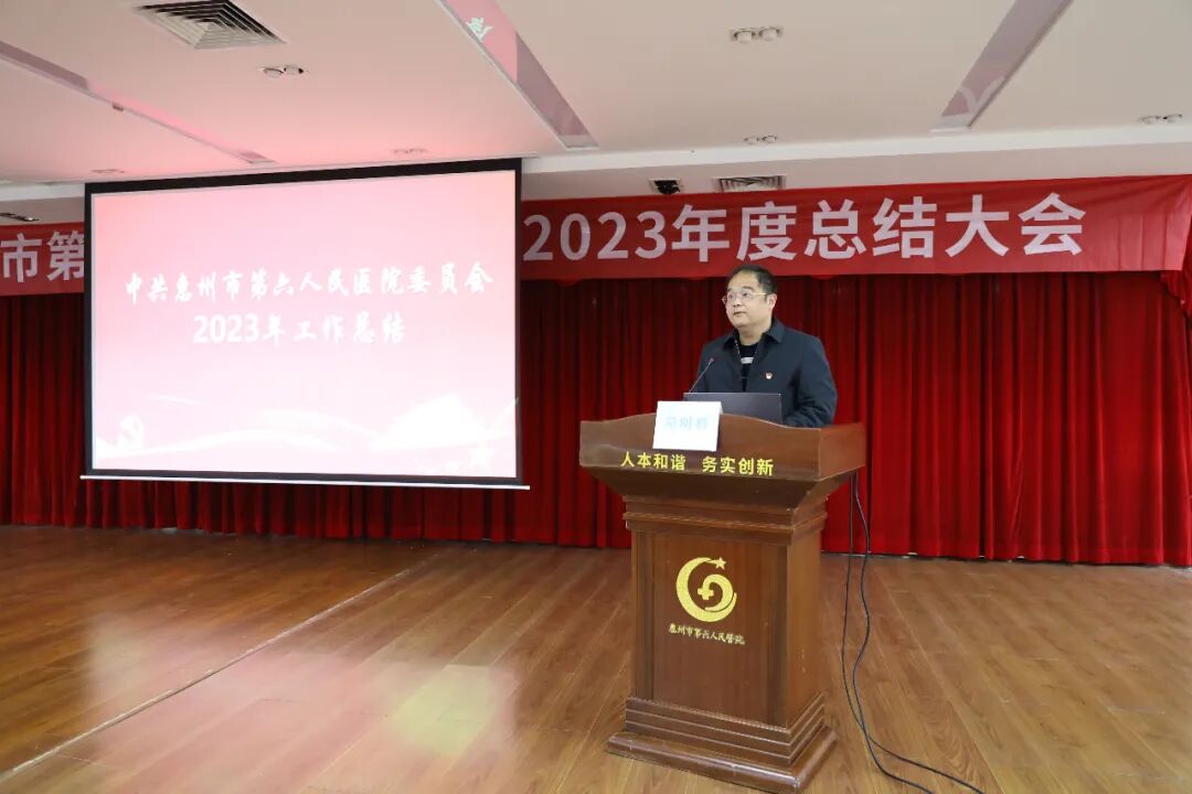 1月26日下午,惠州六院黨委召開(kāi)年度工作總結會(huì)議,回顧總結2023年黨委工作成(chéng)績,安排部署2024年黨建工作任務。在家黨委班子成(chéng)員、各支部委員、黨員代表共210餘人參加了會(huì)議。會(huì)議由醫院黨委副書記賴曉彤主持。