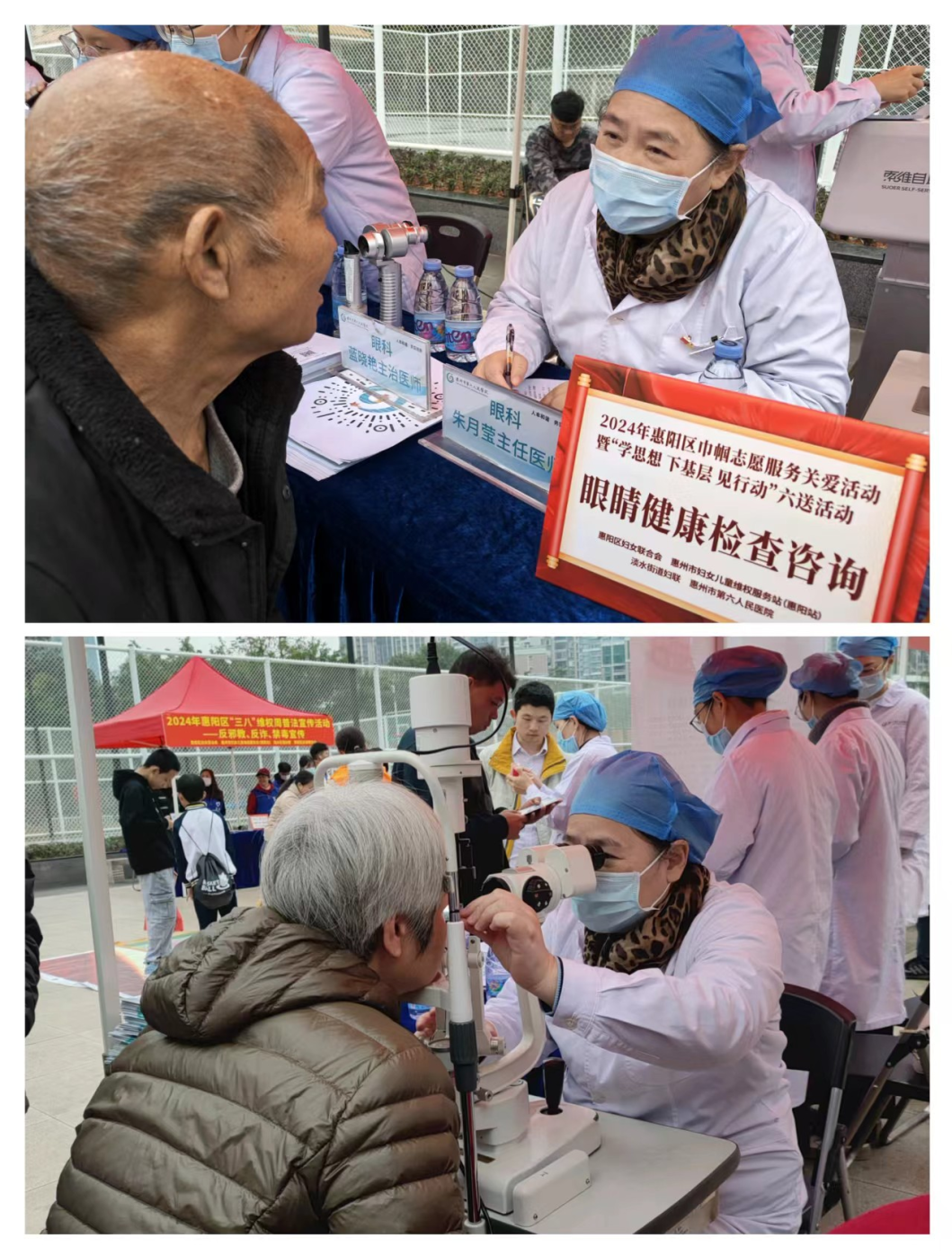 花香漸濃,春風漸暖,爲慶祝第114個“三八”國(guó)際婦女節到來,2024年3月9日,惠陽區婦聯開(kāi)展了主題爲“跟黨奮進(jìn)新征程,巾帼建功新時(shí)代”的系列活動。受區婦聯邀請,惠州市第六人民醫院眼科主任、區“三八”紅旗手朱月瑩主任醫師率領我院的眼科、口腔科組成(chéng)的巾帼志願服務隊前往淡水街道(dào)人民公園開(kāi)展眼科、口腔科義診活動,爲婦女兒童提供面(miàn)對(duì)面(miàn)的眼睛及口腔健康檢查及咨詢工作,營造關愛女性良好(hǎo)氛圍,進(jìn)一步提升婦女兒童獲得感、幸福感。