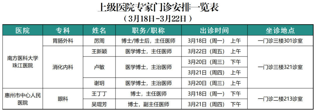 3月18日-3月22日排班情況如下