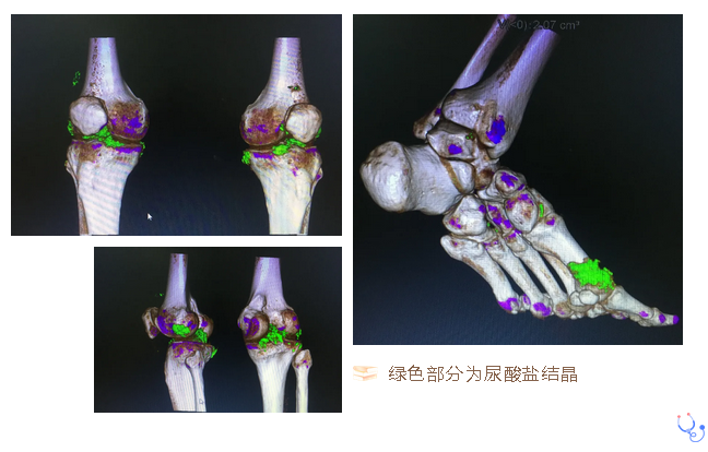 在4月初一天的專科門診,惠州市第六人民醫院風濕免疫科譚立夫主任醫師接診了一位大一學(xué)生小王(化名),這(zhè)位剛滿二十歲的學(xué)生哥,竟然雙手都(dōu)有痛風石,現在手痛的已經(jīng)無法握筆了。這(zhè)位學(xué)生身高170cm,體重卻有100公斤,屬于嚴重肥胖人群,他第一次痛風發(fā)作時(shí)年僅16歲,當時(shí)查血尿酸已經(jīng)有700µmol/L,此後(hòu)經(jīng)常發(fā)作,究竟每年會(huì)發(fā)作多少次,他說(shuō)已經(jīng)記不清,而且去年開(kāi)始就(jiù)已經(jīng)出現痛風石,今年初在醫院進(jìn)行雙源CT檢查發(fā)現其雙膝及足部有尿酸鹽結晶。