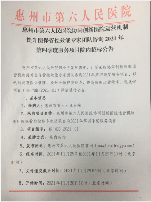 協同創新醫院運營機制提升醫保管控效能(néng)專家團隊咨詢2021年第四季度服務項目院内招标