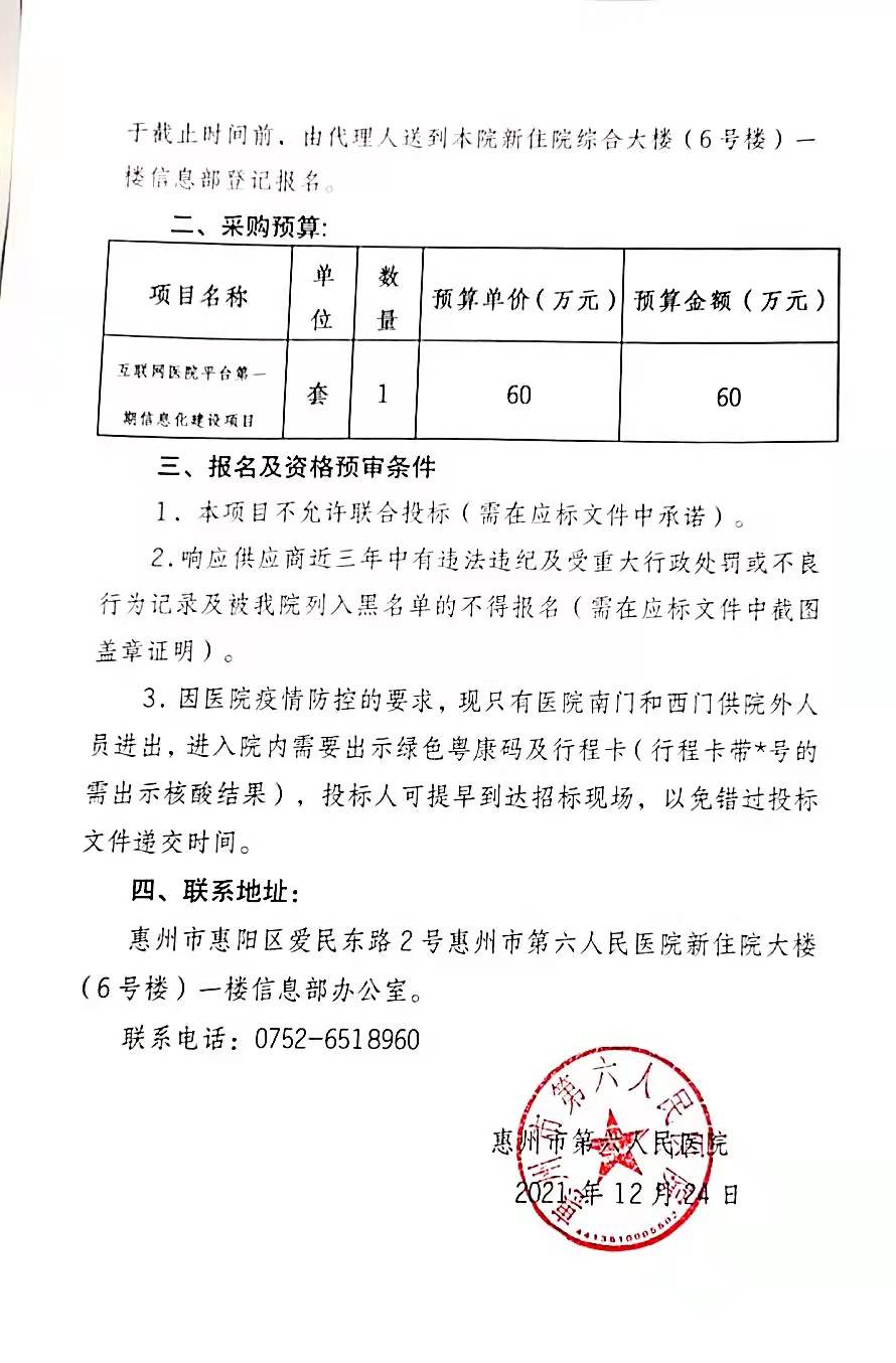 關于互聯網醫院平台第一期信息化建設項目院内招标公告