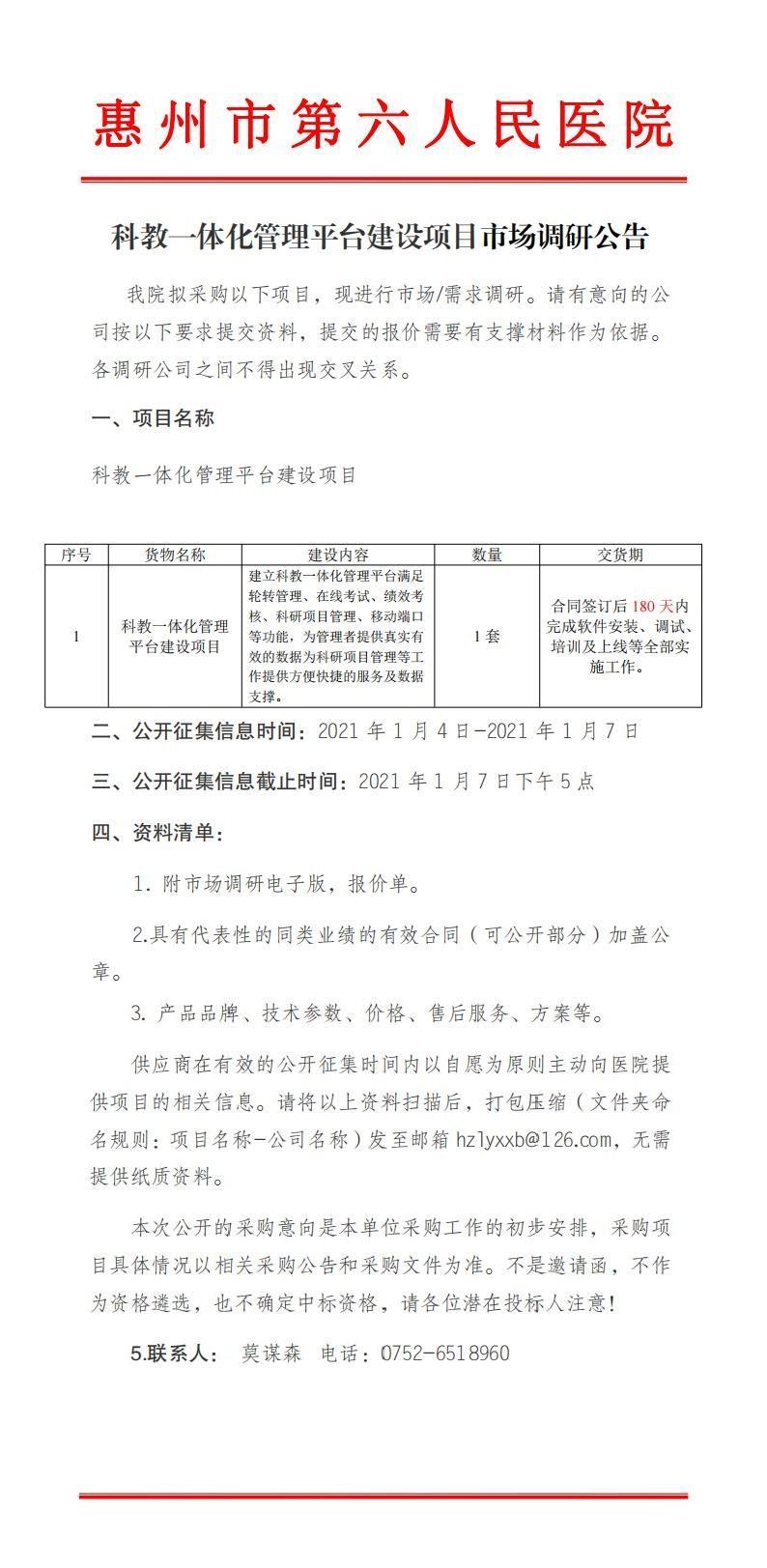 附件:惠州市第六人民醫院市場調研表(點擊下載)