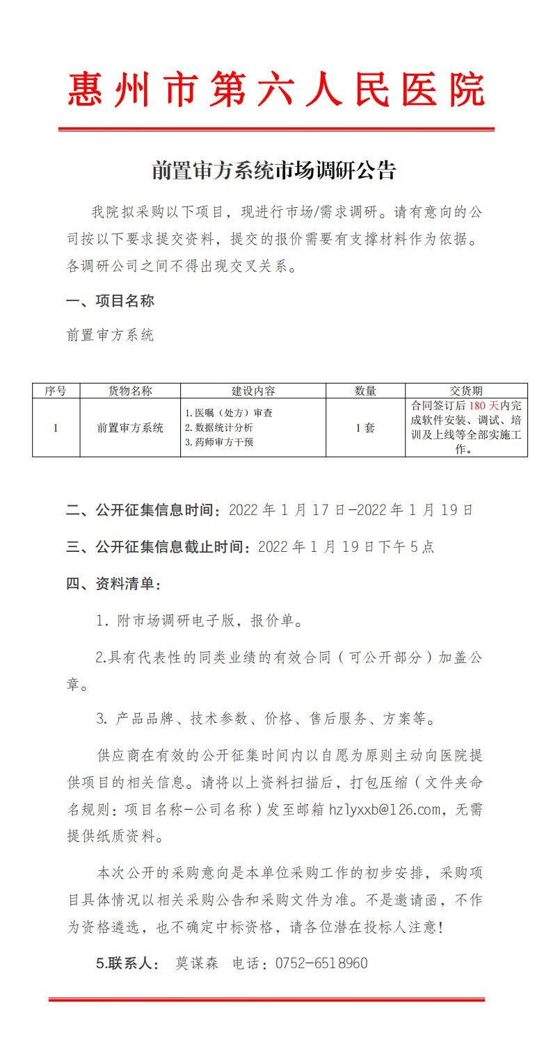 前置審方系統市場調研公告