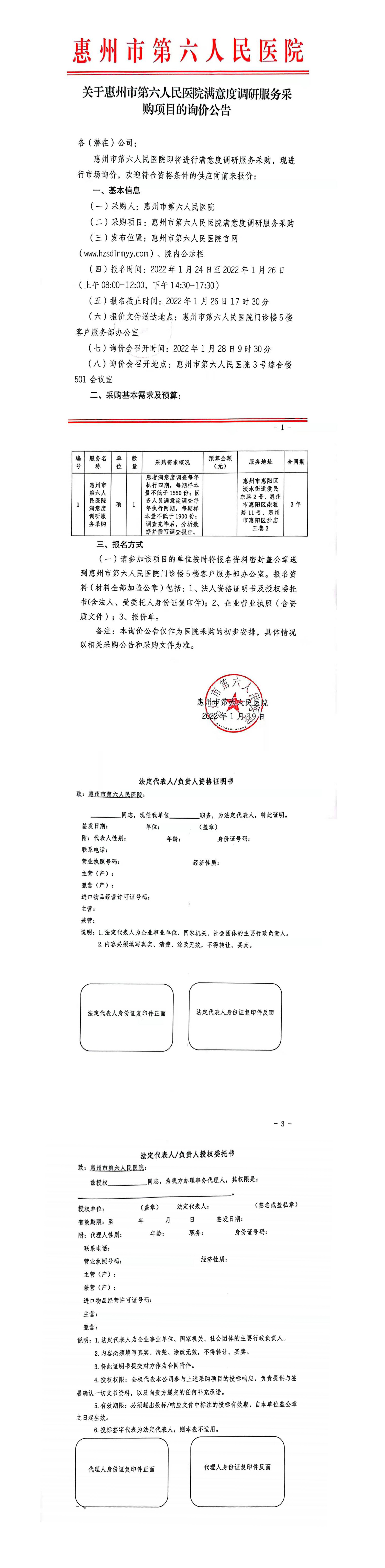 關于惠州市第六人民醫院滿意度調研服務采購項目的詢價公告