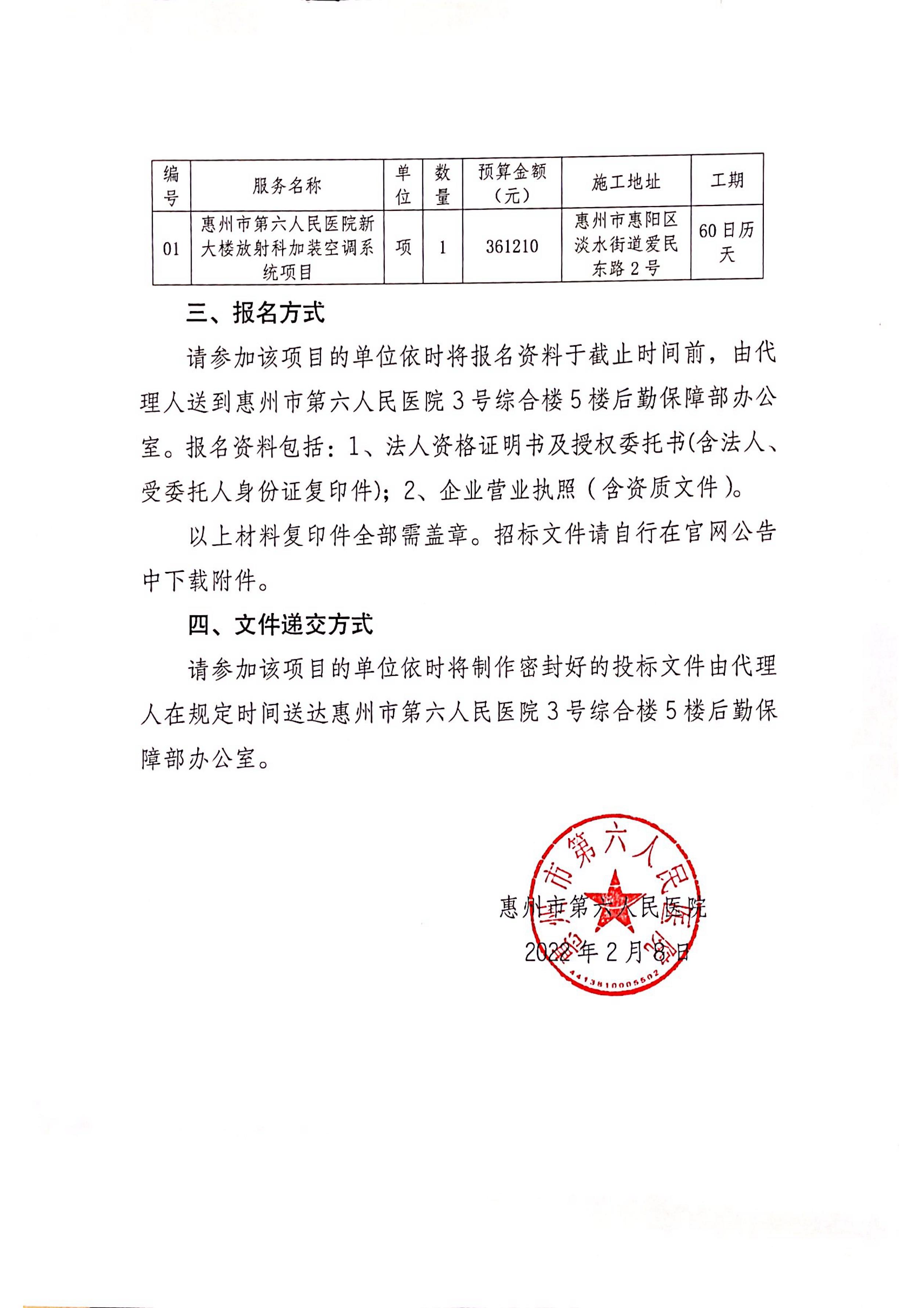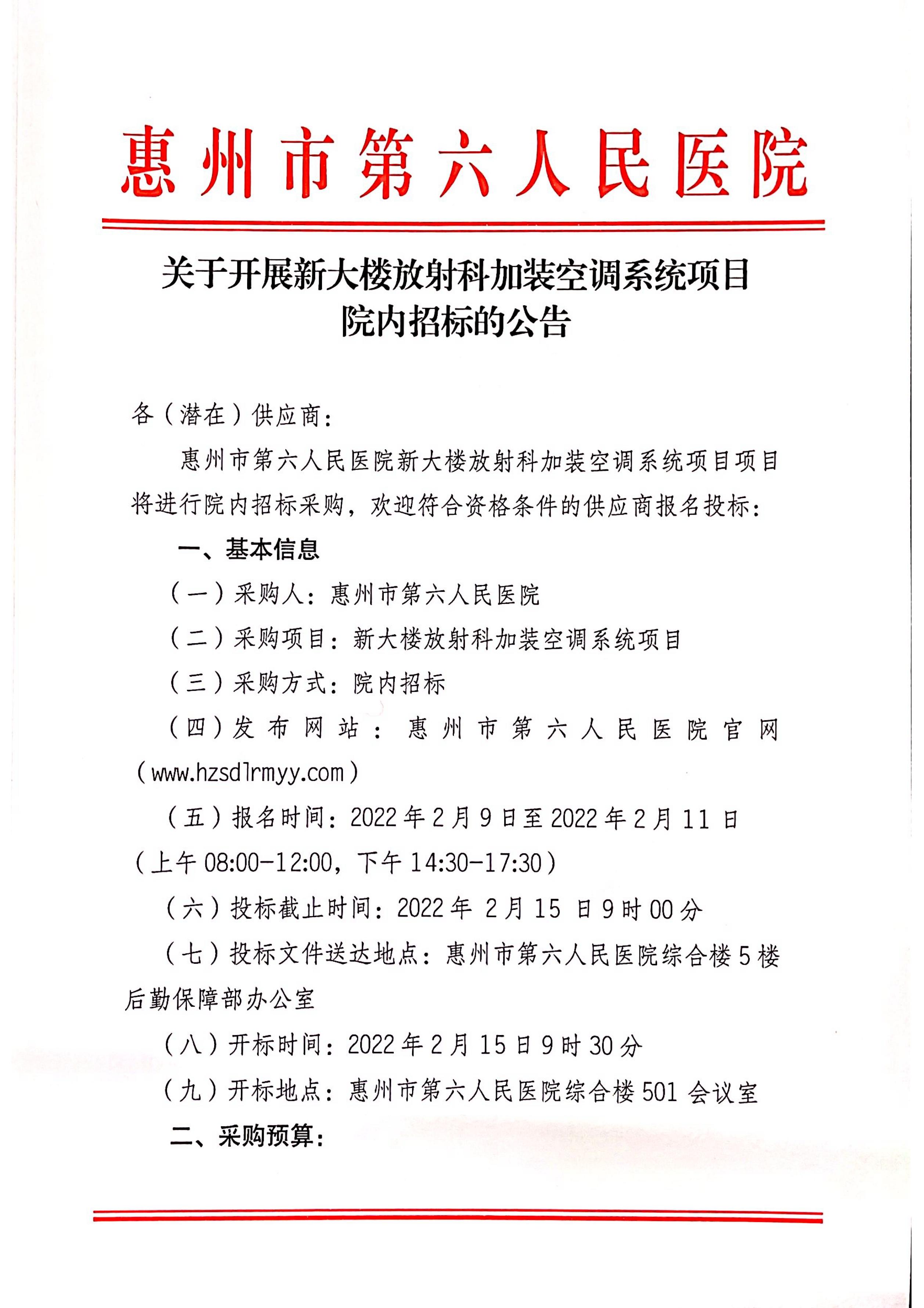 附件:惠州市第六人民醫院放射科空調招标文件(點擊鏈接下載附件)