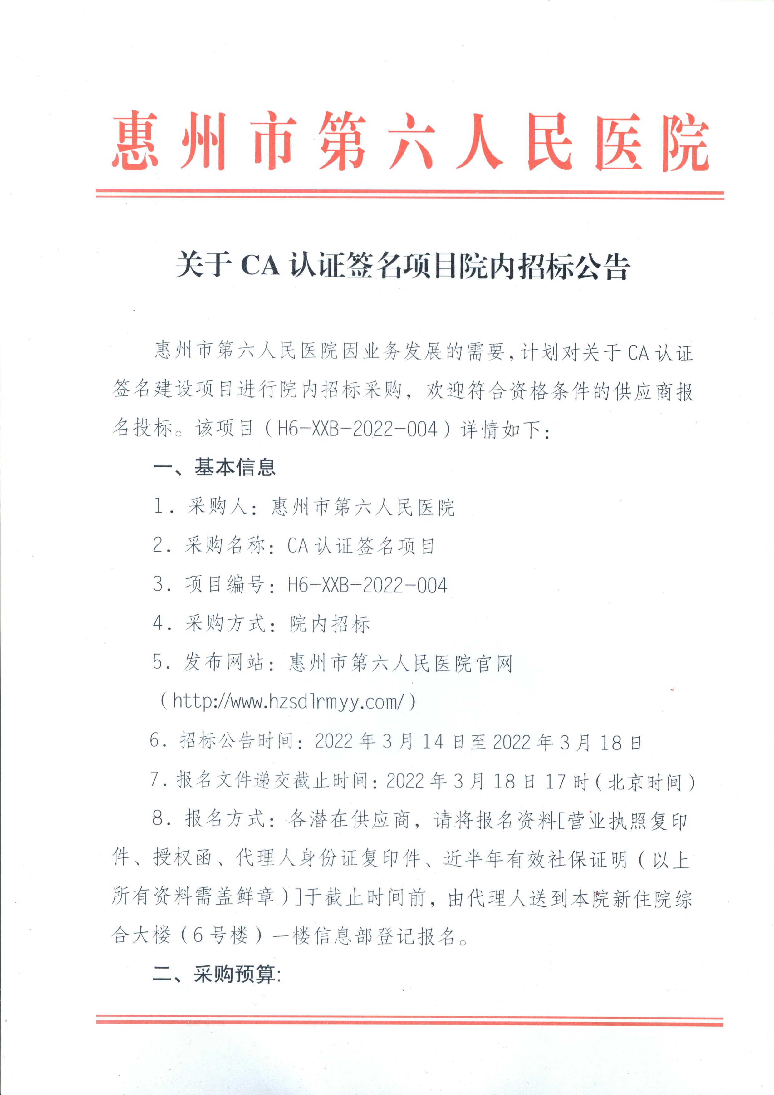 附件1:CA認證簽名項目院内招标書(點擊下載附件)