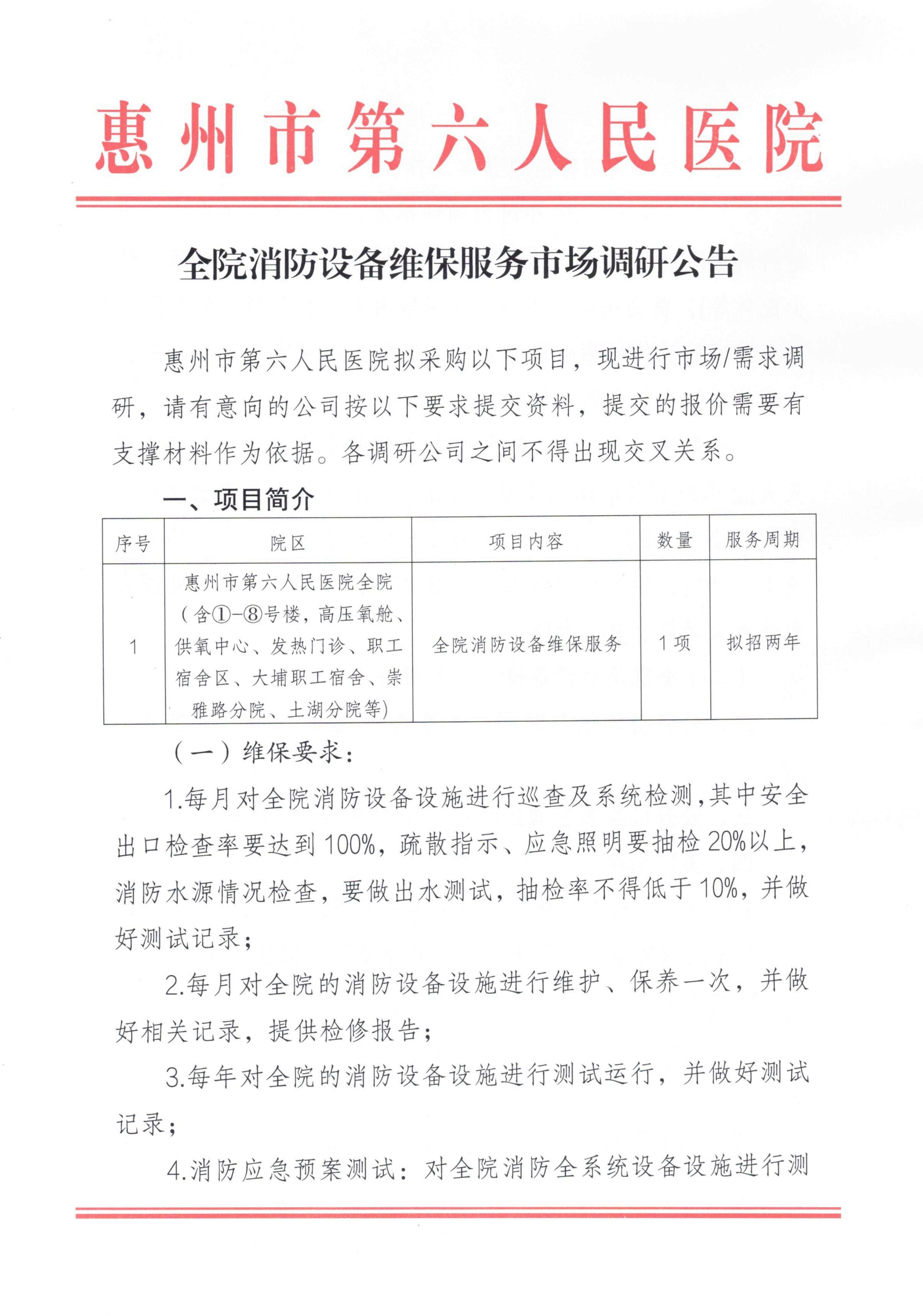 ·上一篇:采購台式電腦市場調研公告 ·下一篇:全院消防設備維保服務市場調研公..