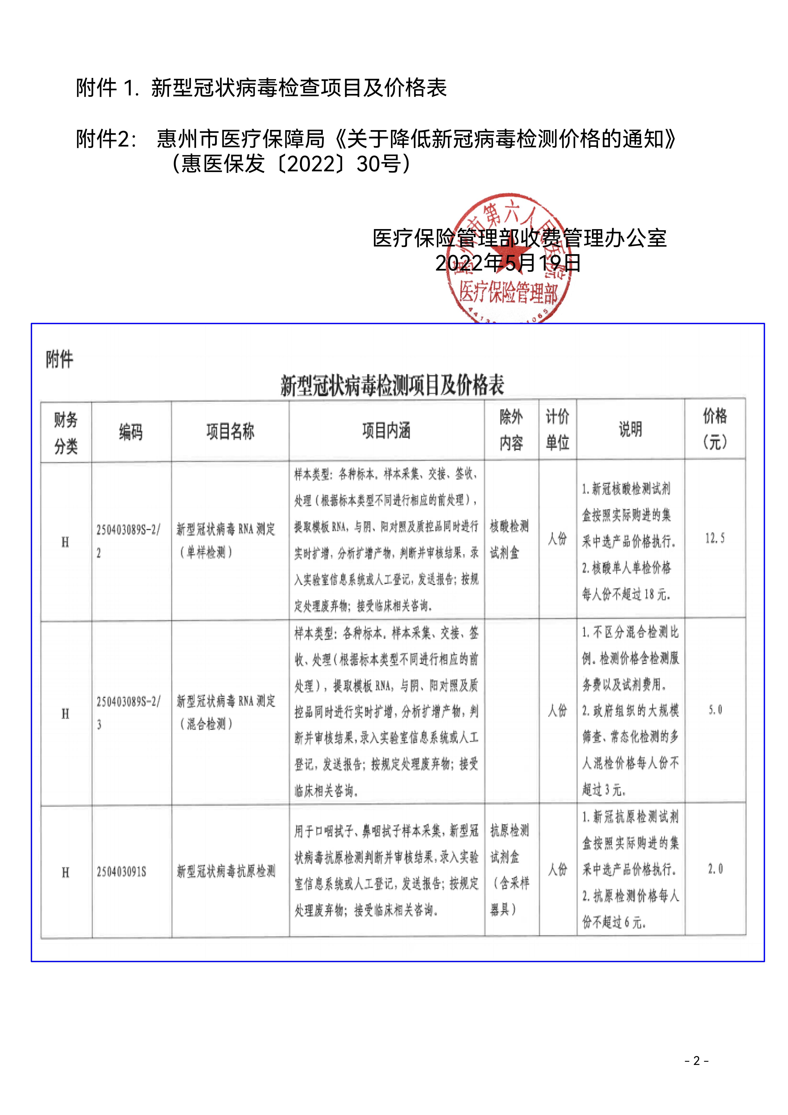 附件二:惠醫保發(fā)〔2022〕30号惠州市醫療保障局關于降低新冠病毒檢測價格的通知(點擊鏈接下載附件)