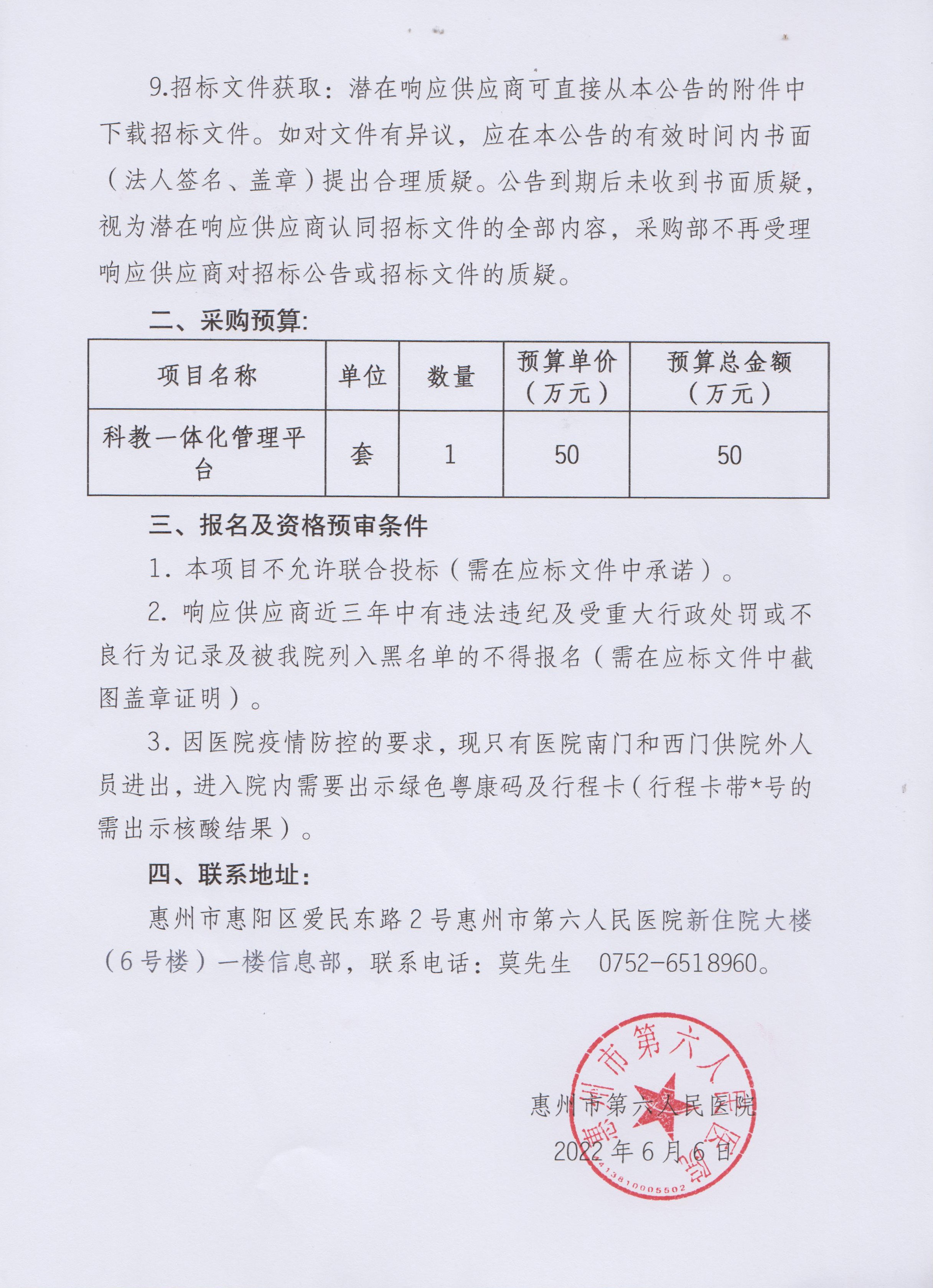 附件1:科教一體化管理平台院内招标書(點擊鏈接下載附件)