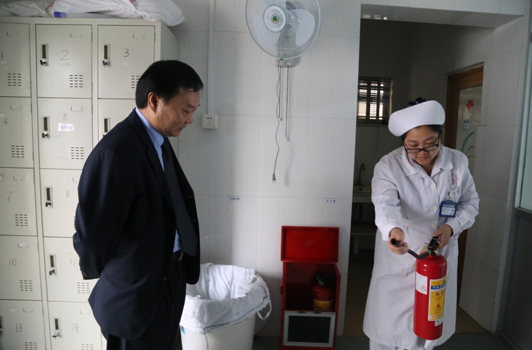 檢查組重點檢查了供應室、酒精倉庫、高壓氧艙、中心供氧站、配電房、發(fā)電機房、内四區等科室,仔細查看了各科室滅火器材是否配備齊全,是否有易燃物品,消防設施是否完好(hǎo)有效,安全出口消防通道(dào)是否暢通等情況。每到一處,羅院長(cháng)都(dōu)認真詢問和聽取科室負責人關于安全生産工作的落實情況,并要求工作人員要加強責任心,落實好(hǎo)各項規章制度,确保春節期間的安全穩定。