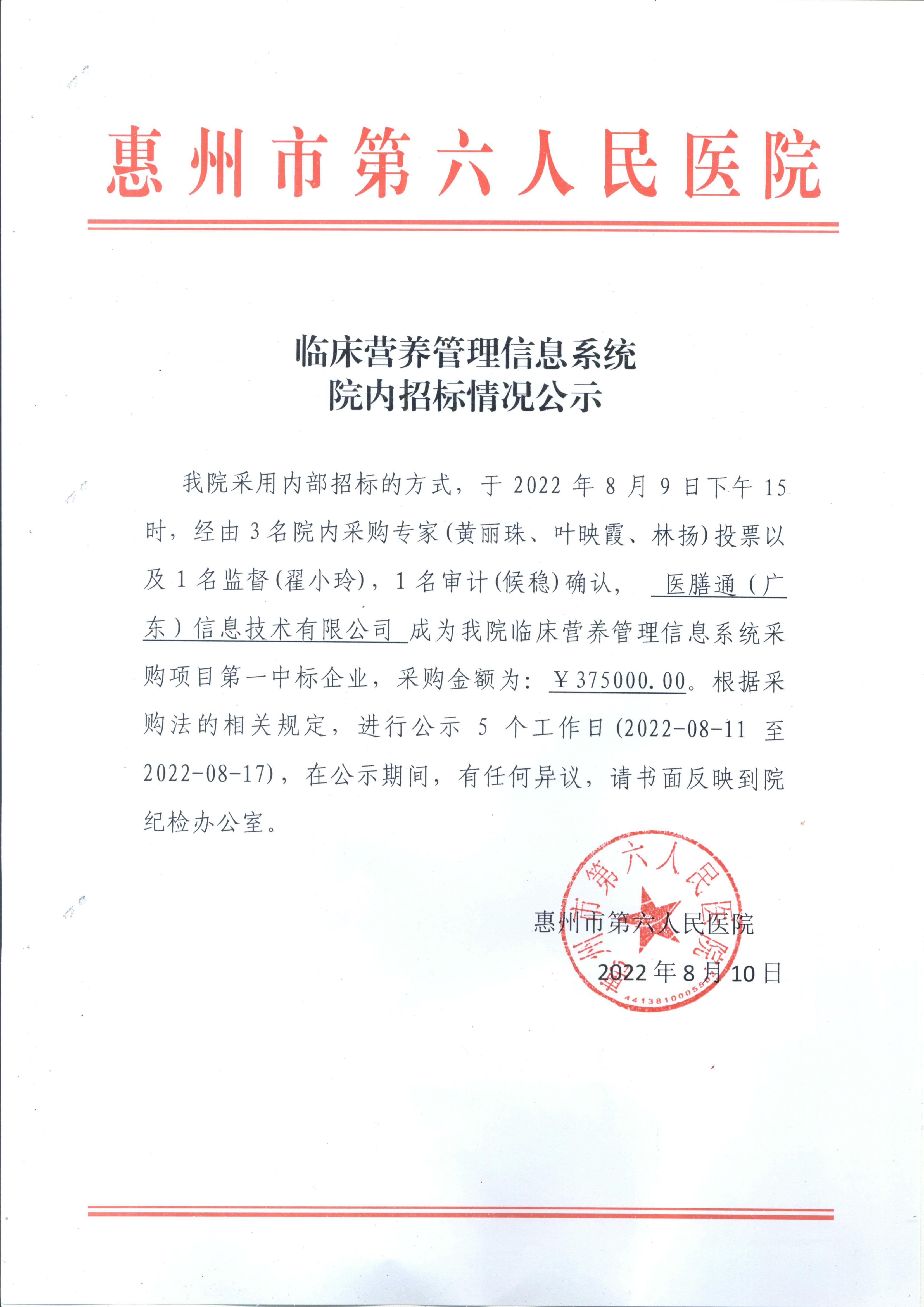 臨床營養管理信息系統院内招标情況公示