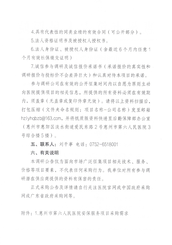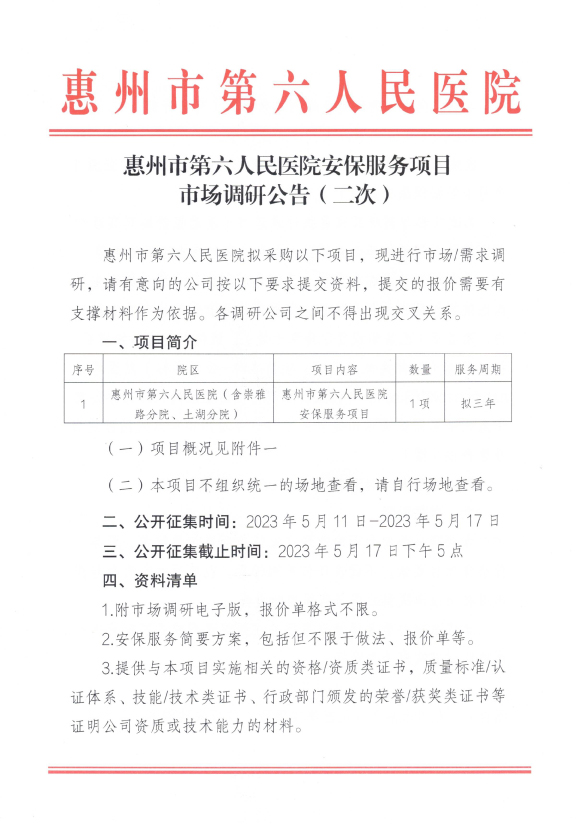 附件2:惠州市第六人民醫院安保服務項目市場調研表