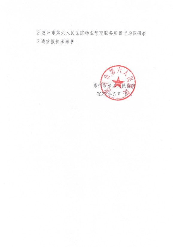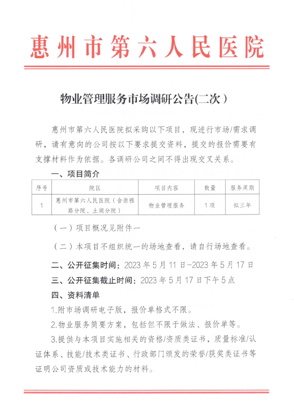 附件2:惠州市第六人民醫院物業管理服務市場調研表