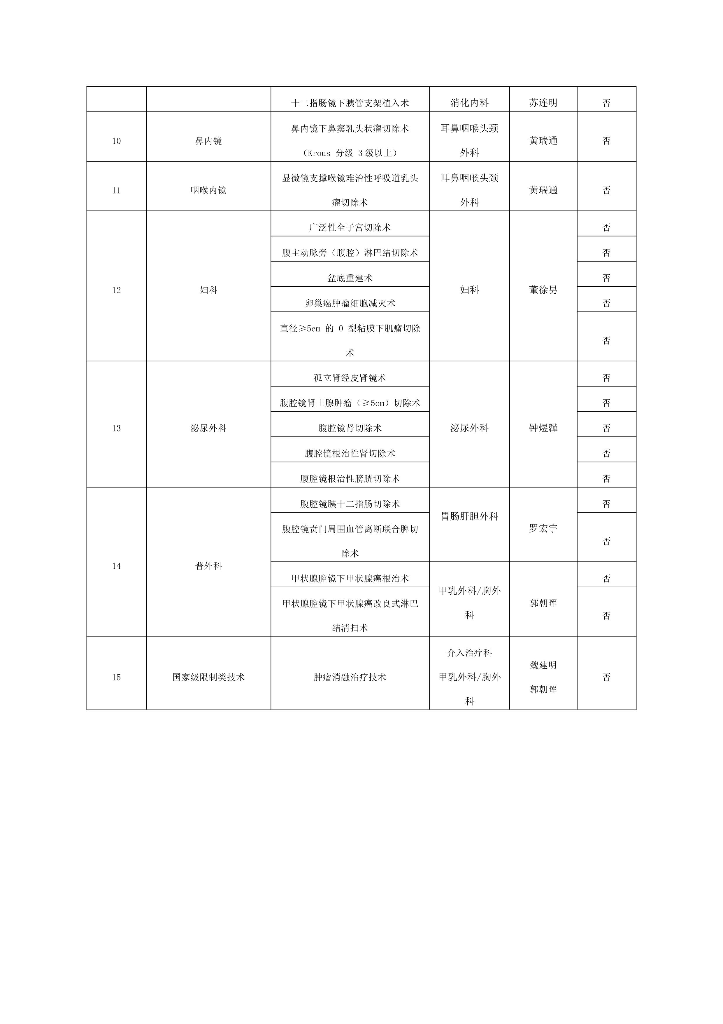 關于公布我院限制類技術目錄及臨床應用情況的通知