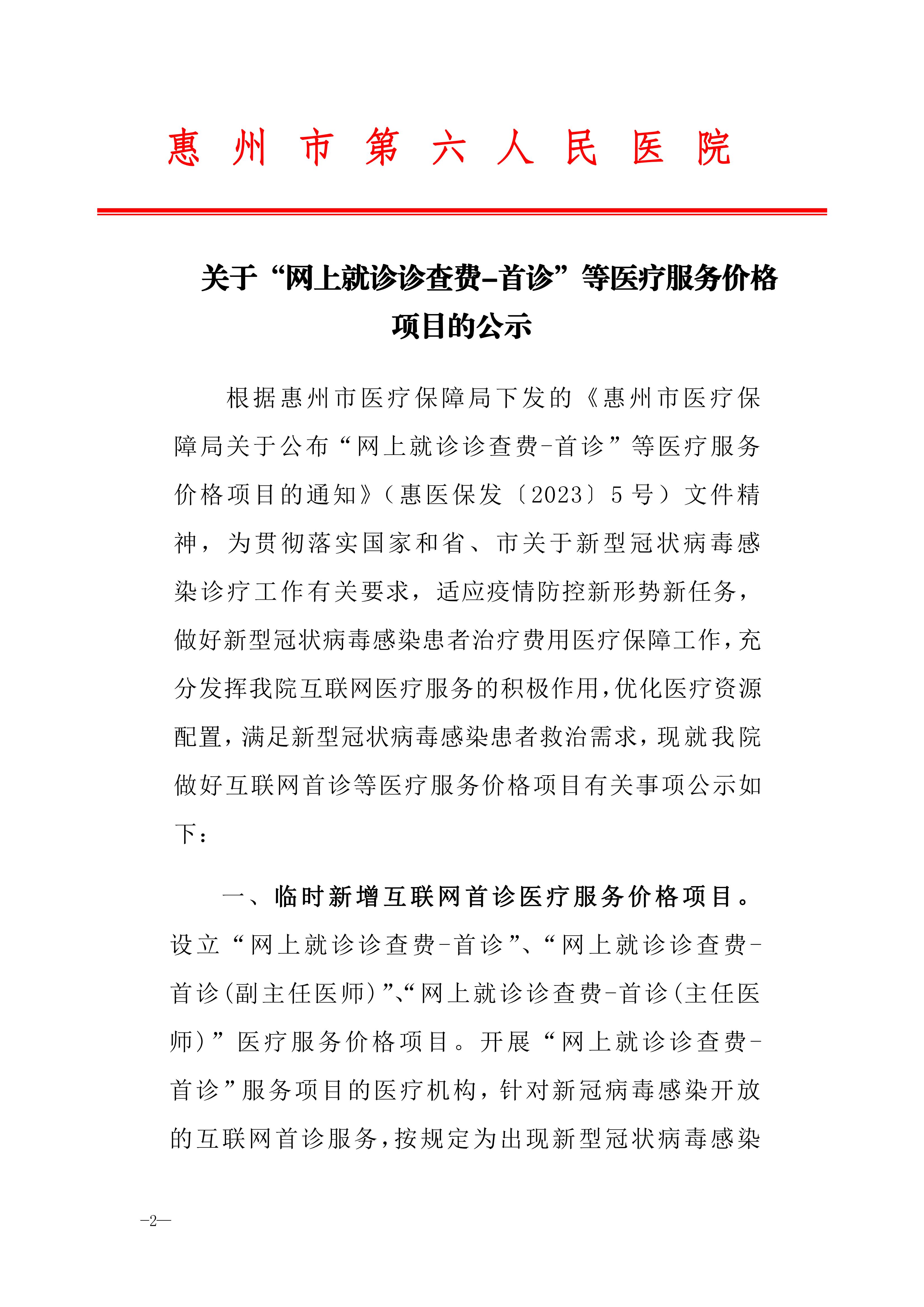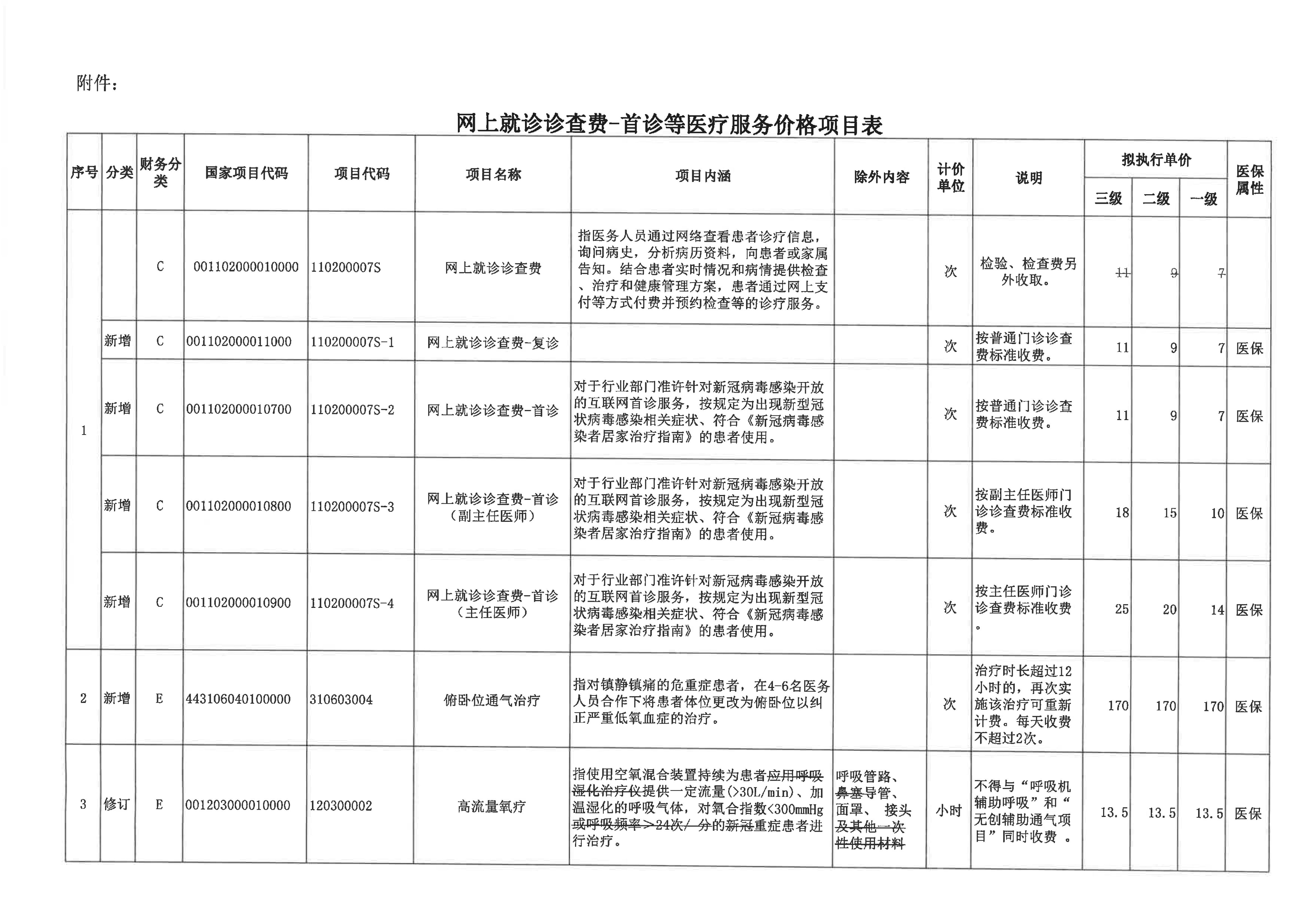 關于“網上就(jiù)診診查費-首診“等醫療服務價格項目的公示