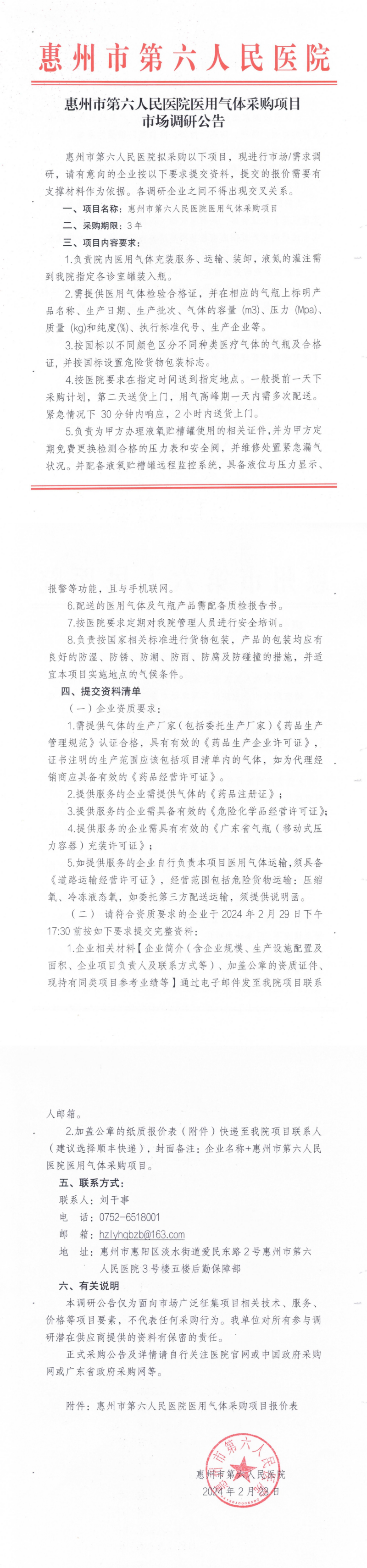 附件:惠州市第六人民醫院醫用氣體采購項目報價表