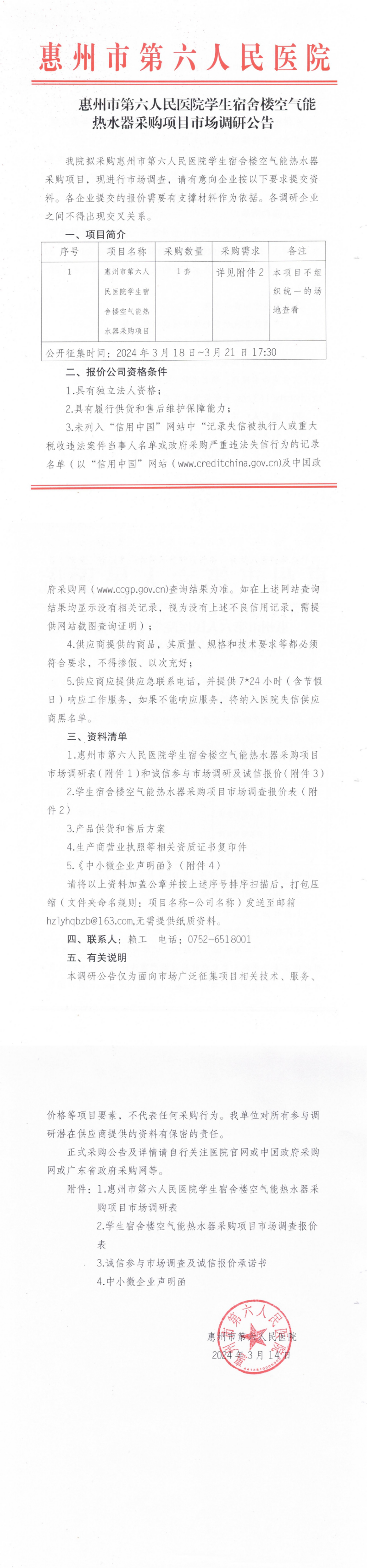 附件2:惠州市第六人民醫院學(xué)生宿舍空氣能(néng)熱水器采購項目市場調查報價表