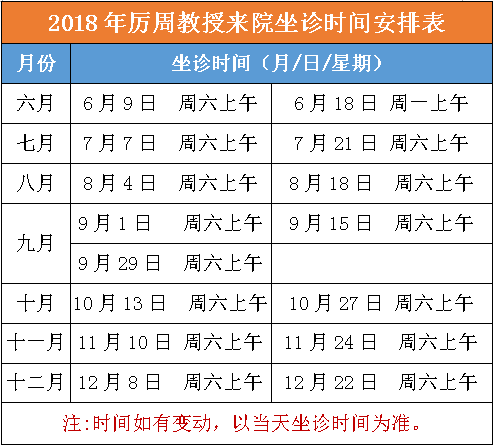 厲周教授來我院坐診的時(shí)間安排表