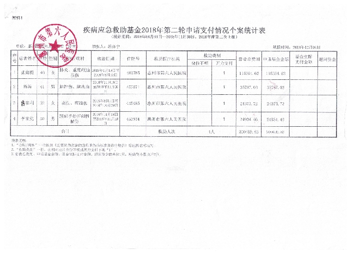 疾病應急救助基金2018年第二輪申請支付情況個案統計表