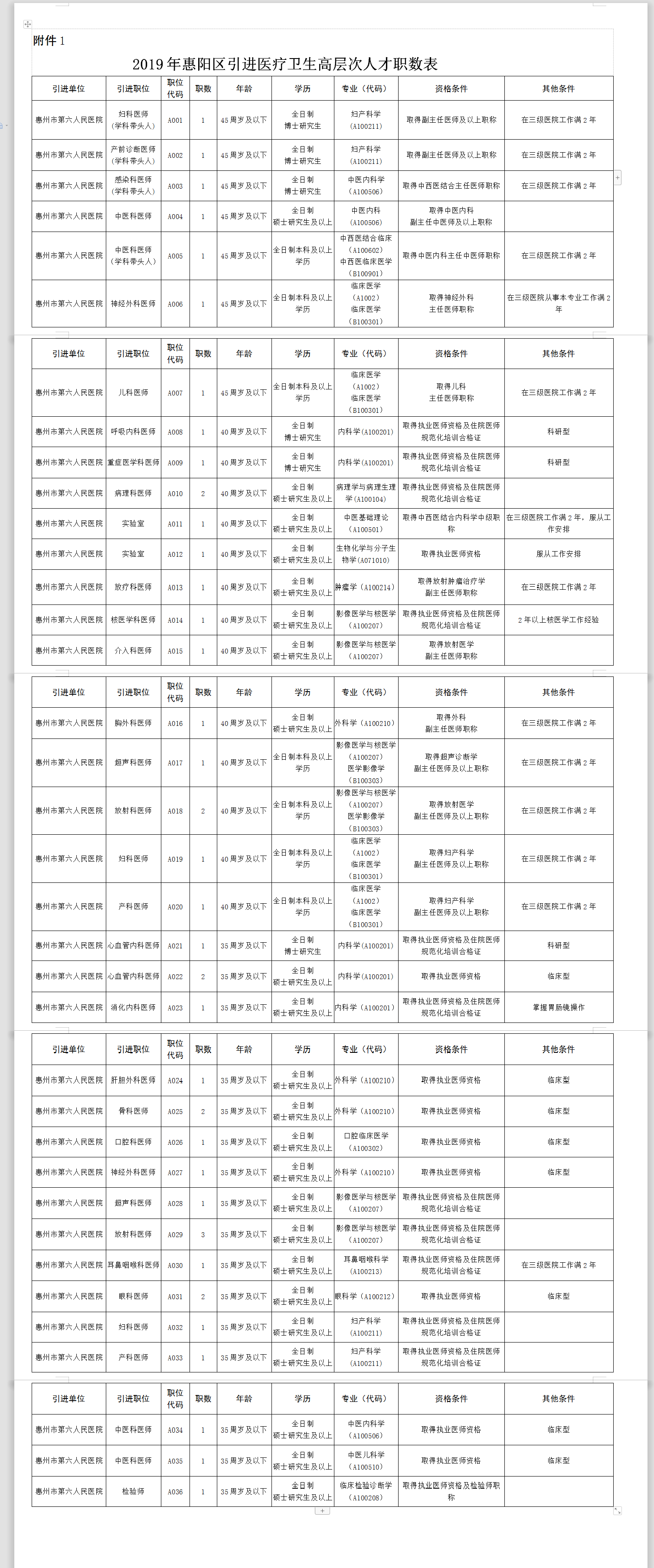 附件1:2019年惠陽區引進(jìn)醫療衛生高層次人才職數表