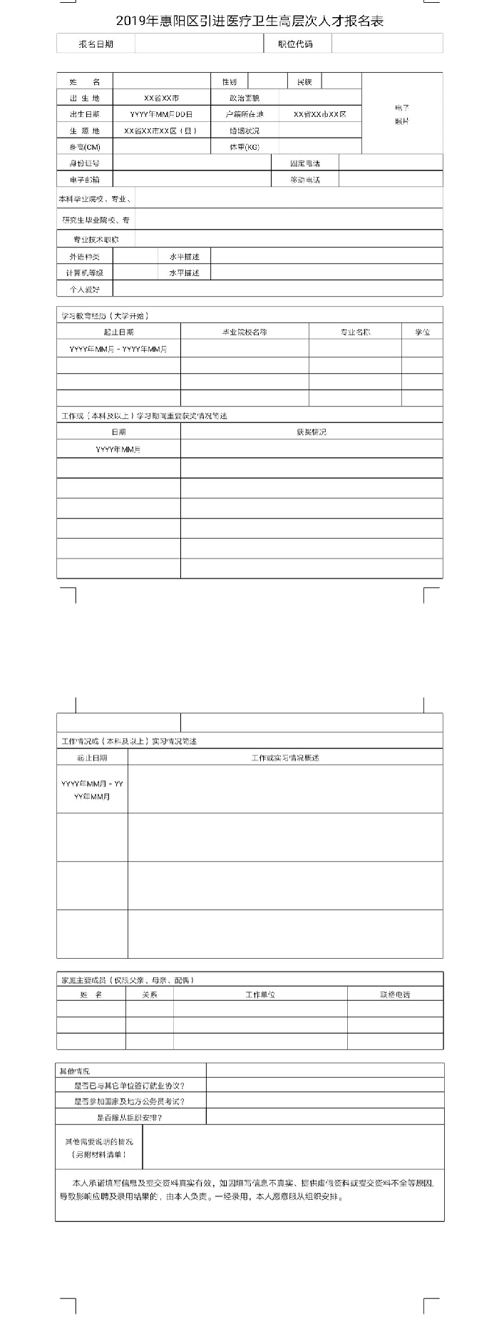 附件2:2019年惠州市惠陽區引進(jìn)醫療衛生高層次人才報名表