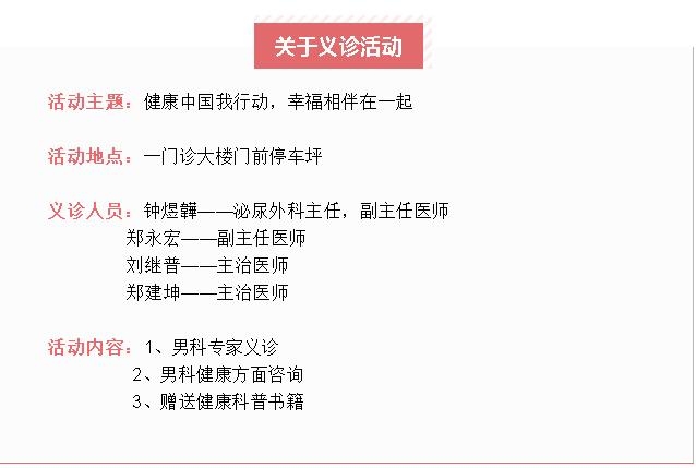 中國(guó)男性健康日義診活動預告 ,爲您解決“男”題