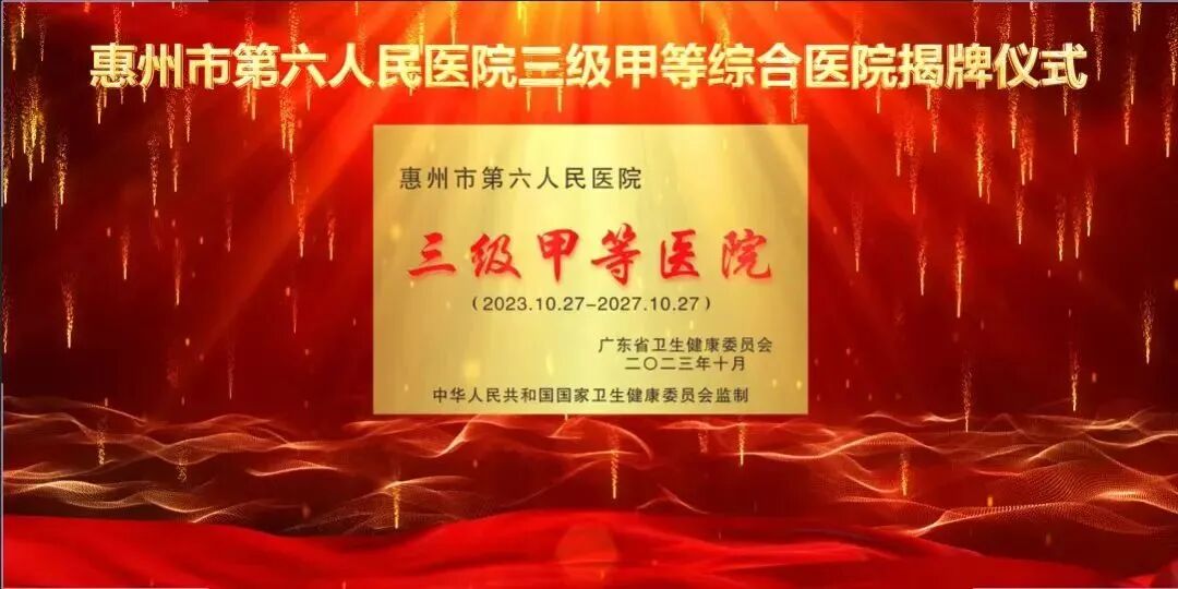 2023年10月27日,廣東省衛健委發(fā)文公布:經(jīng)資格審查、現場評審、綜合評分、結果公示,确定惠州市第六人民醫院爲三級甲等綜合醫院。這(zhè)是醫院發(fā)展史上的一個重要豐碑,對(duì)醫院乃至對(duì)全市衛健系統發(fā)展同樣(yàng)具有重大意義。